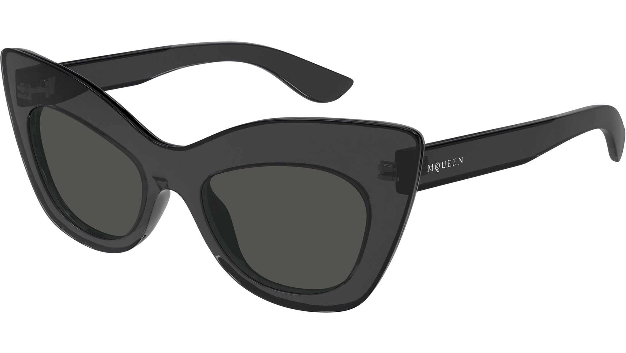 Occhiali da sole Alexander McQueen Logo modello AM0516S in iniettato cat eye codice colore 003 grigio scuro trasparente lucido con aste grigio e lenti color grigio tinta unita. Rivenditore autorizzato Alexander McQueen online. Gli occhiali vengono consegnati con custodia e accessori originali e sono coperti dalla garanzia ufficiale di 12 mesi del produttore.
