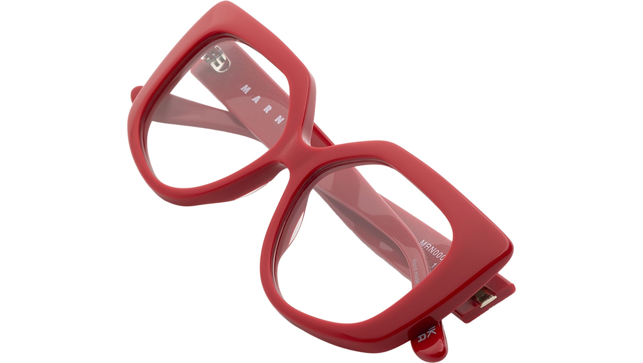 Montatura per occhiali da vista Marni Zvier Red con montatura in acetato rosso e lenti color lenti demo. Codice modello: FWY. Made in Italy. Rivenditore autorizzato Marni online. Gli occhiali vengono consegnati con custodia e accessori originali e sono coperti dalla garanzia ufficiale di 12 mesi del produttore.