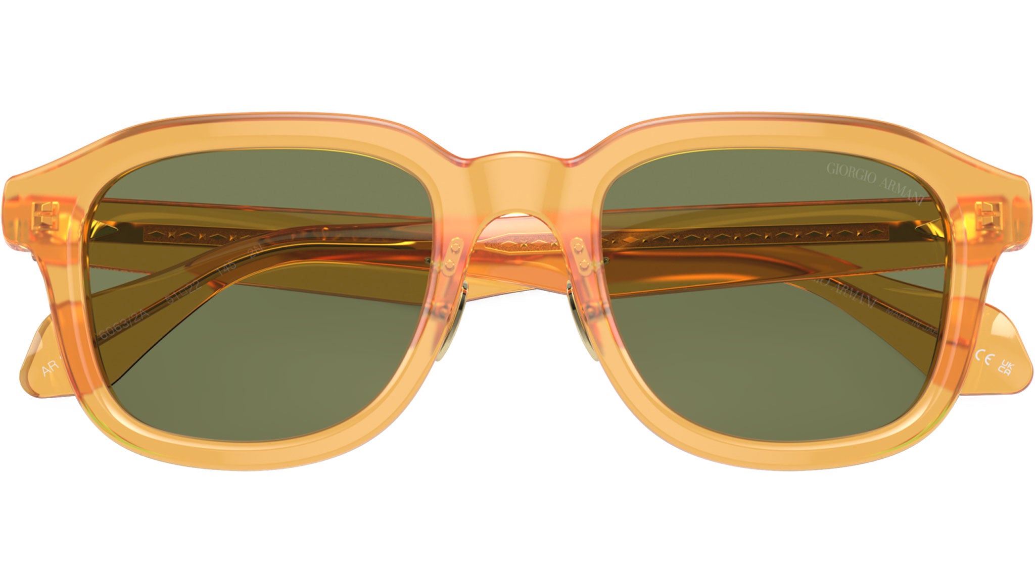Occhiali da sole Giorgio Armani linea Runway modello AR8206 codice colore 60632A con montatura full rim in acetato miele trasparente e lenti in poliammide color verde. Fitting: con naselli regolabili. Linea: Runway. Codice modello: AR8206. Codice colore: 60632A. Rivenditore Giorgio Armani autorizzato online. Tutti i modelli Armani vengono consegnati con custodia e accessori originali e sono coperti da garanzia ufficiale del produttore di 12 mesi.