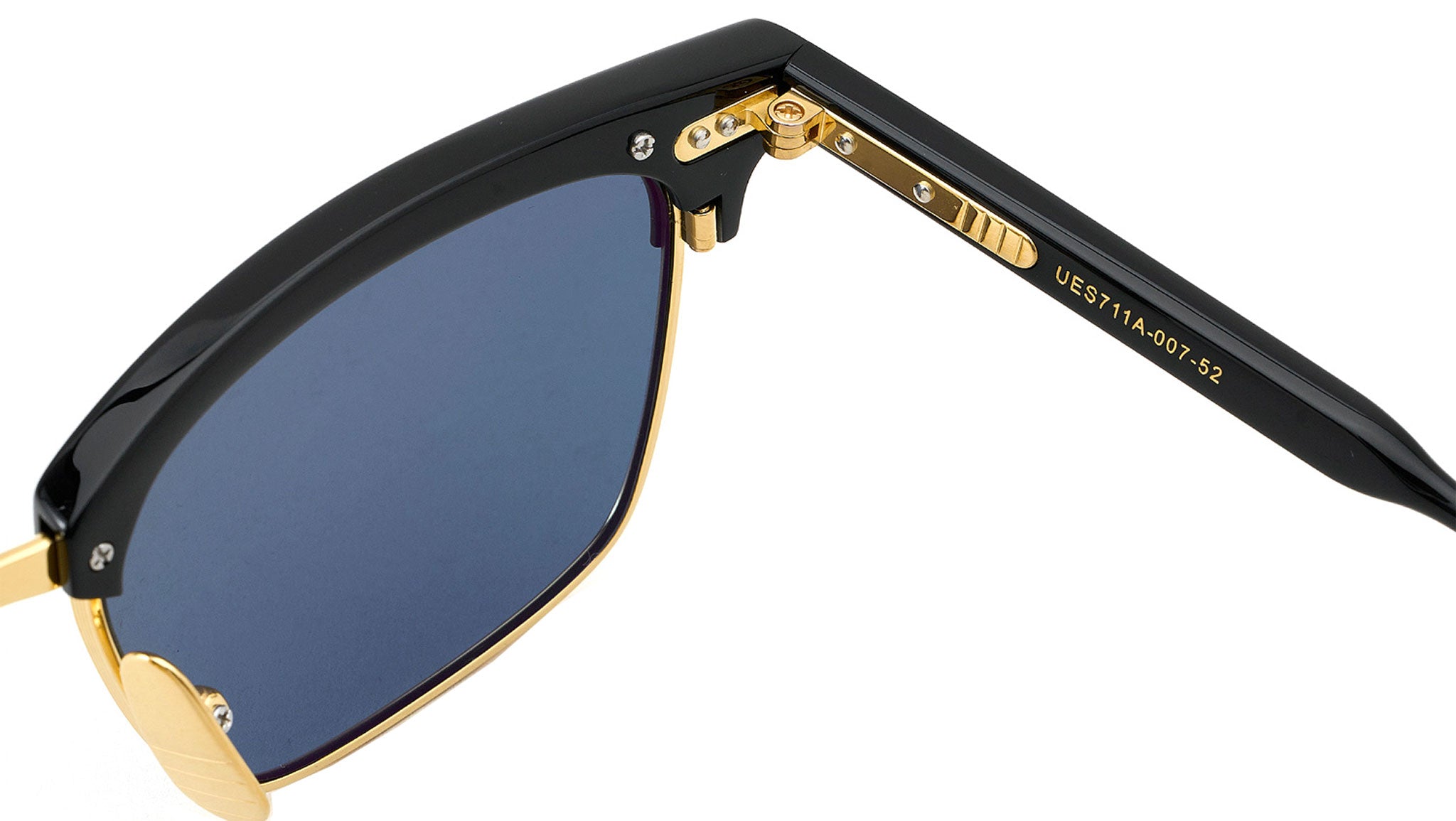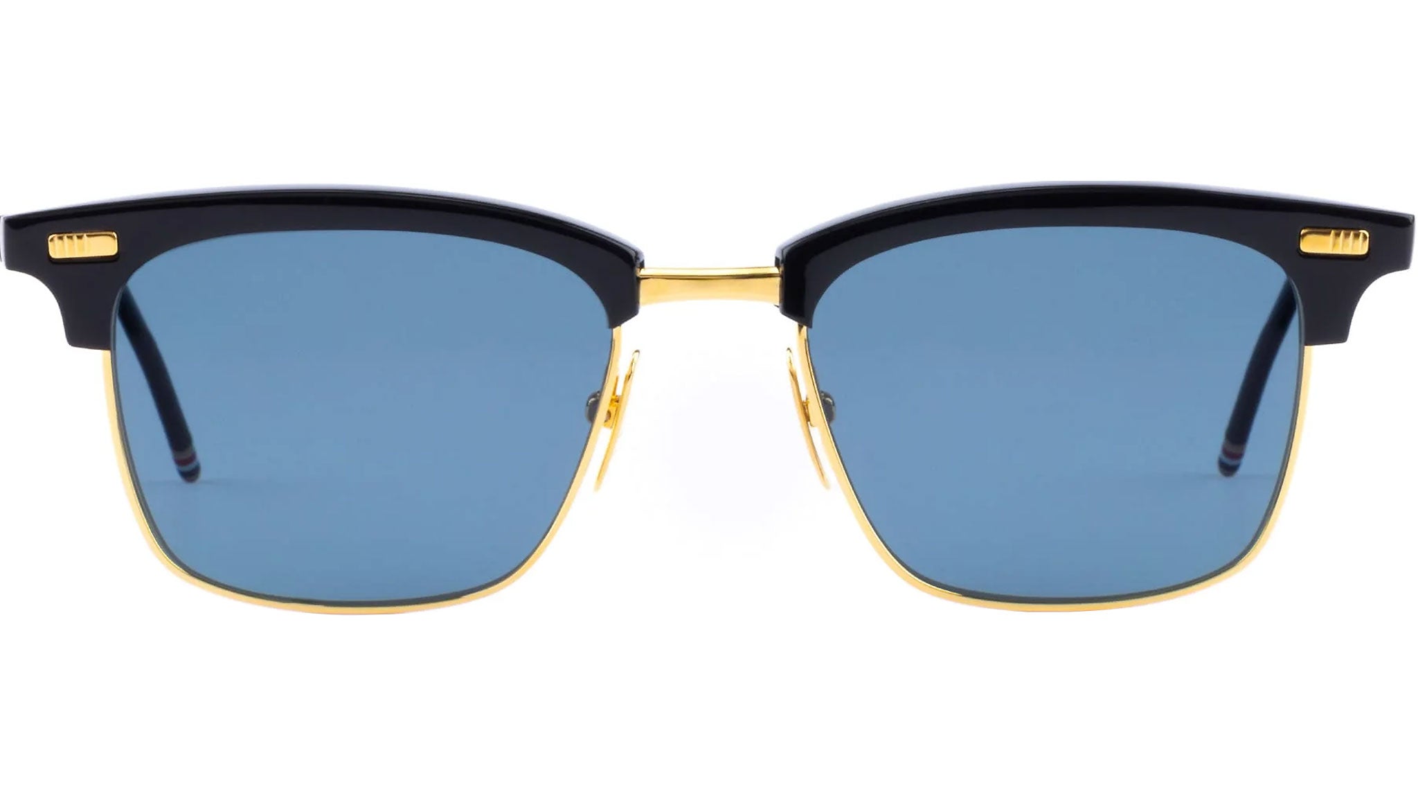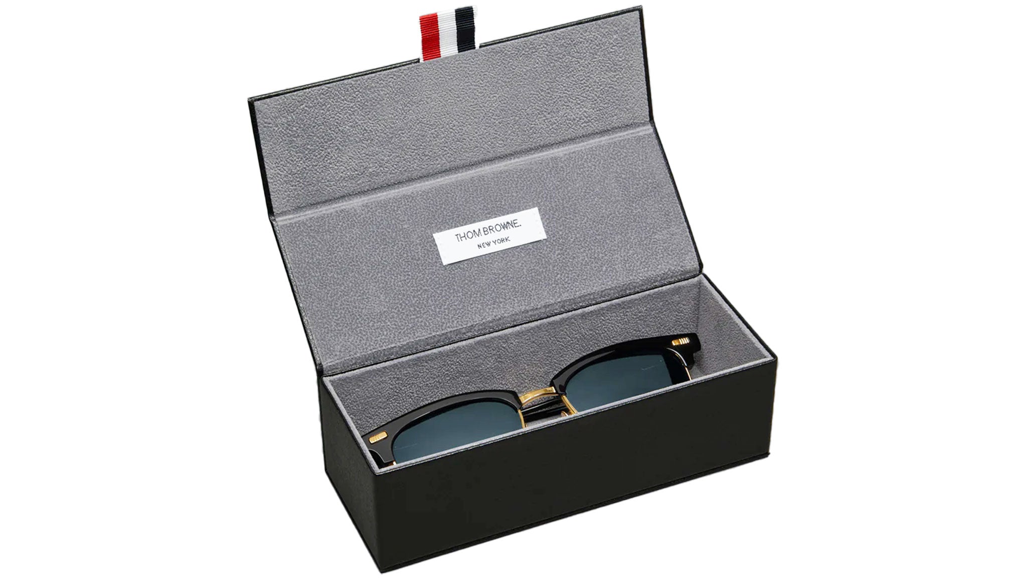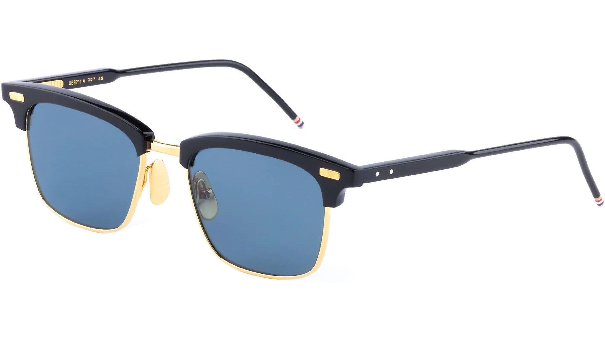 Occhiali da sole Thom Browne unisex modello UES711A con montatura full-rim in acetato-titanio nero lucido e lenti color navy scuro. Codice Brand: UES711A. Codice colore: 007. Rivenditore autorizzato Thom Browne online. Gli occhiali vengono consegnati con custodia e accessori originali e sono coperti da garanzia standard di 12 mesi del produttore.