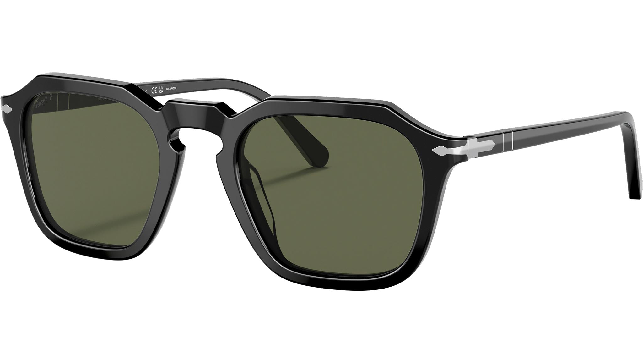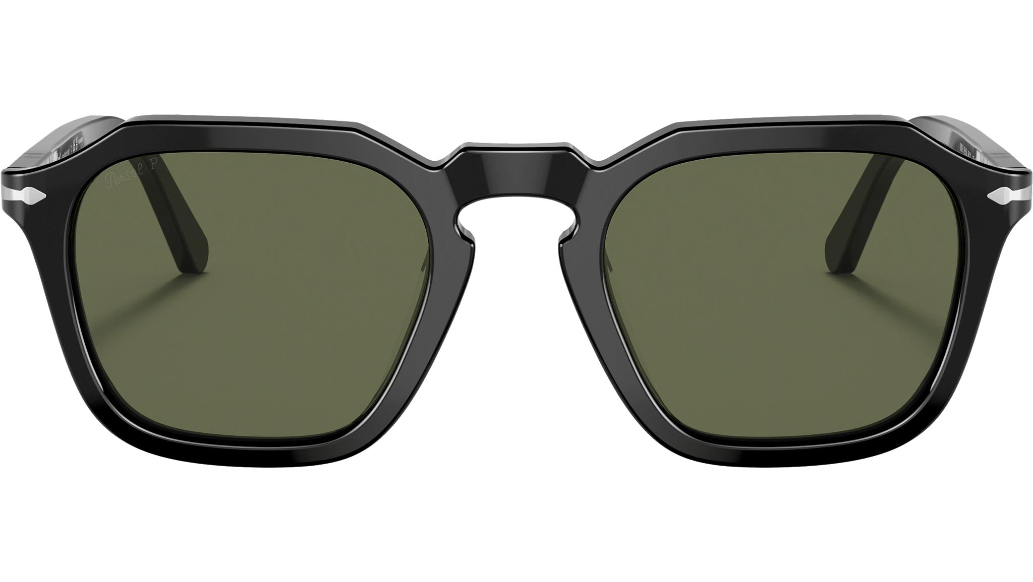 Occhiali da sole Persol modello PO3292S codice colore 95/58 con montatura color nero full rim acetato e lenti in vetro color verde.