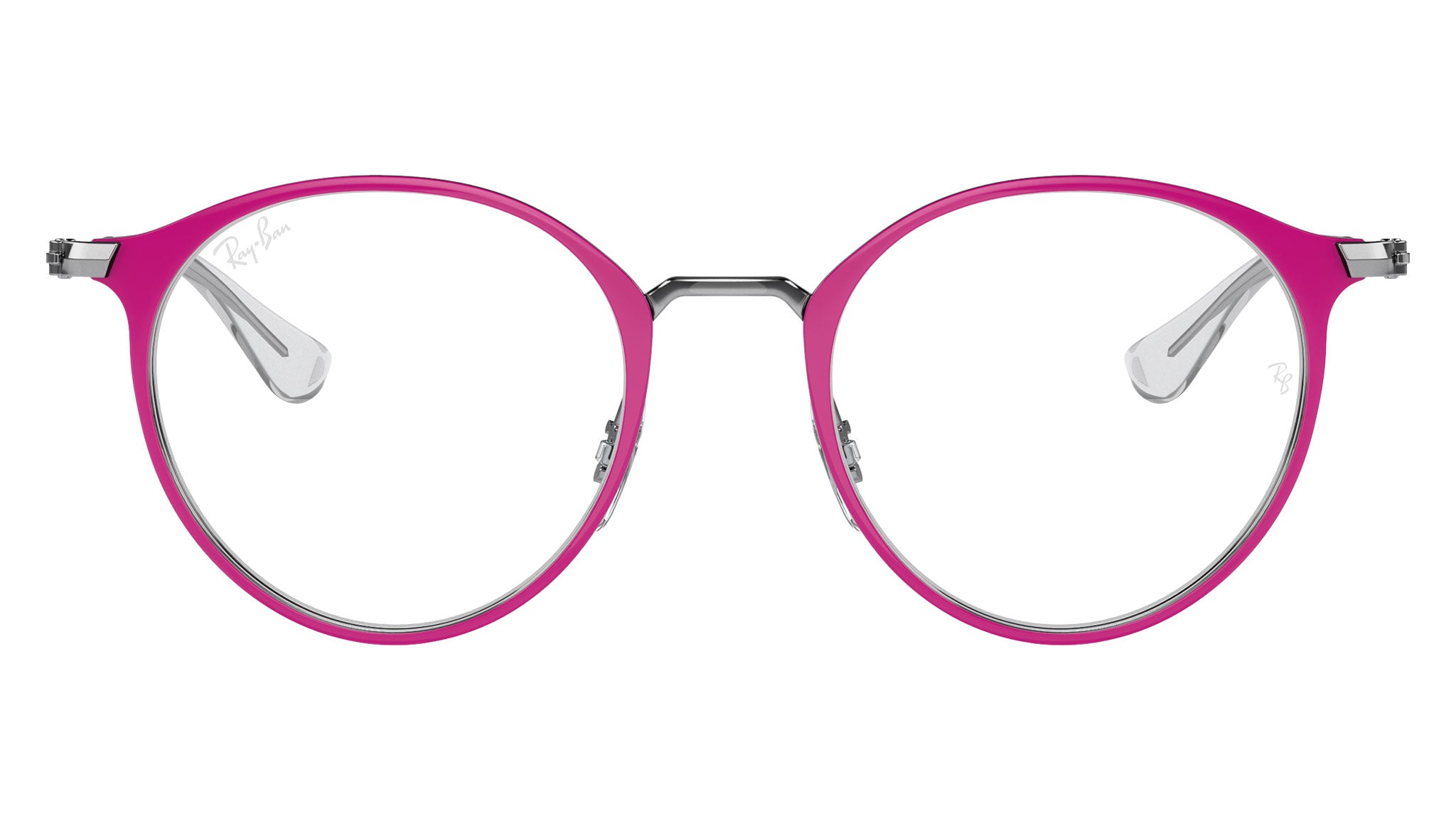 Occhiali da vista Ray-Ban Kids RY1053 color fucsia in argento in metallo codice colore 4067. Forma unisex panto full rim con lenti demo. Con custodia originale e garanzia. Rivenditore autorizzato Ray-Ban.