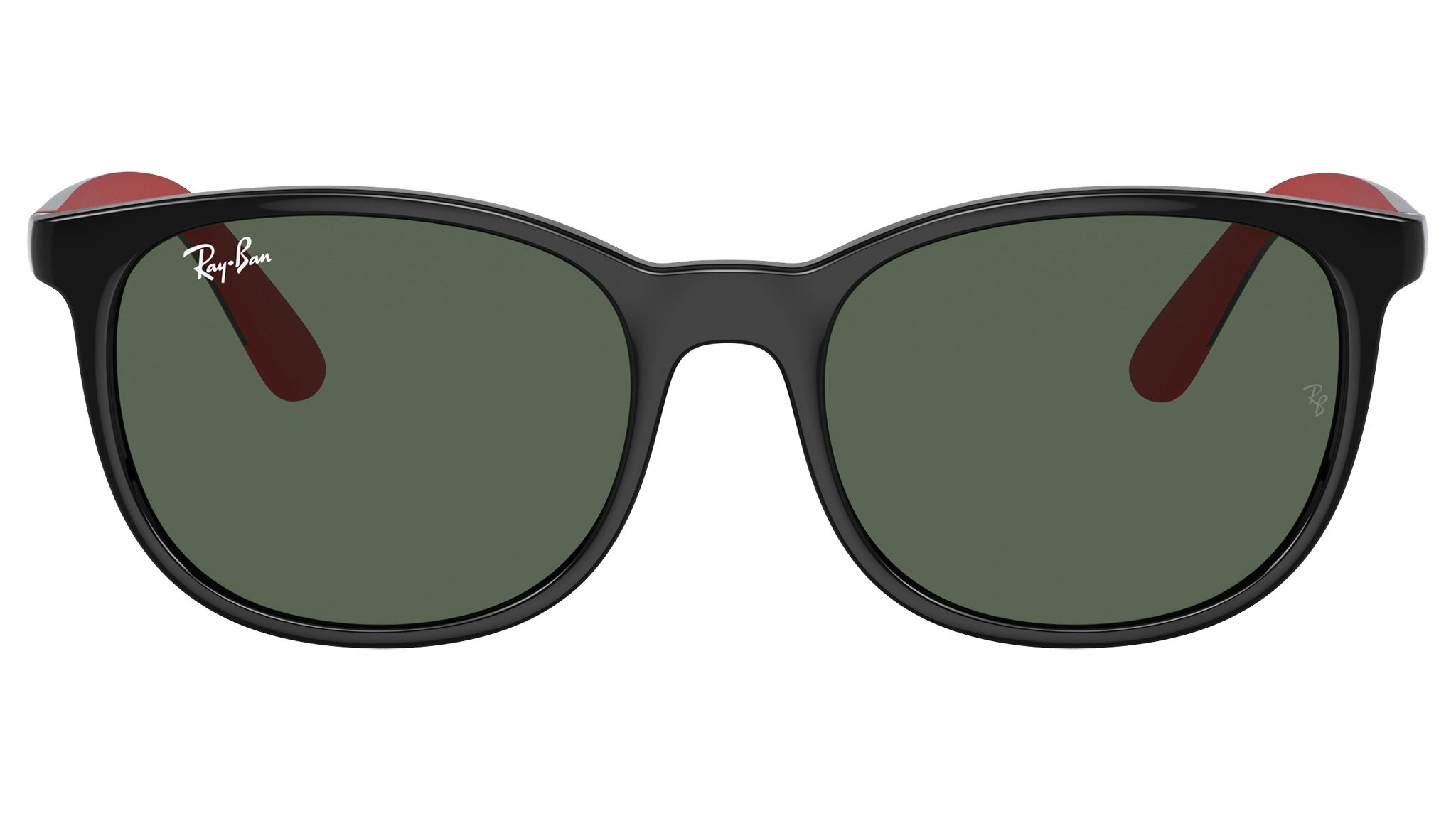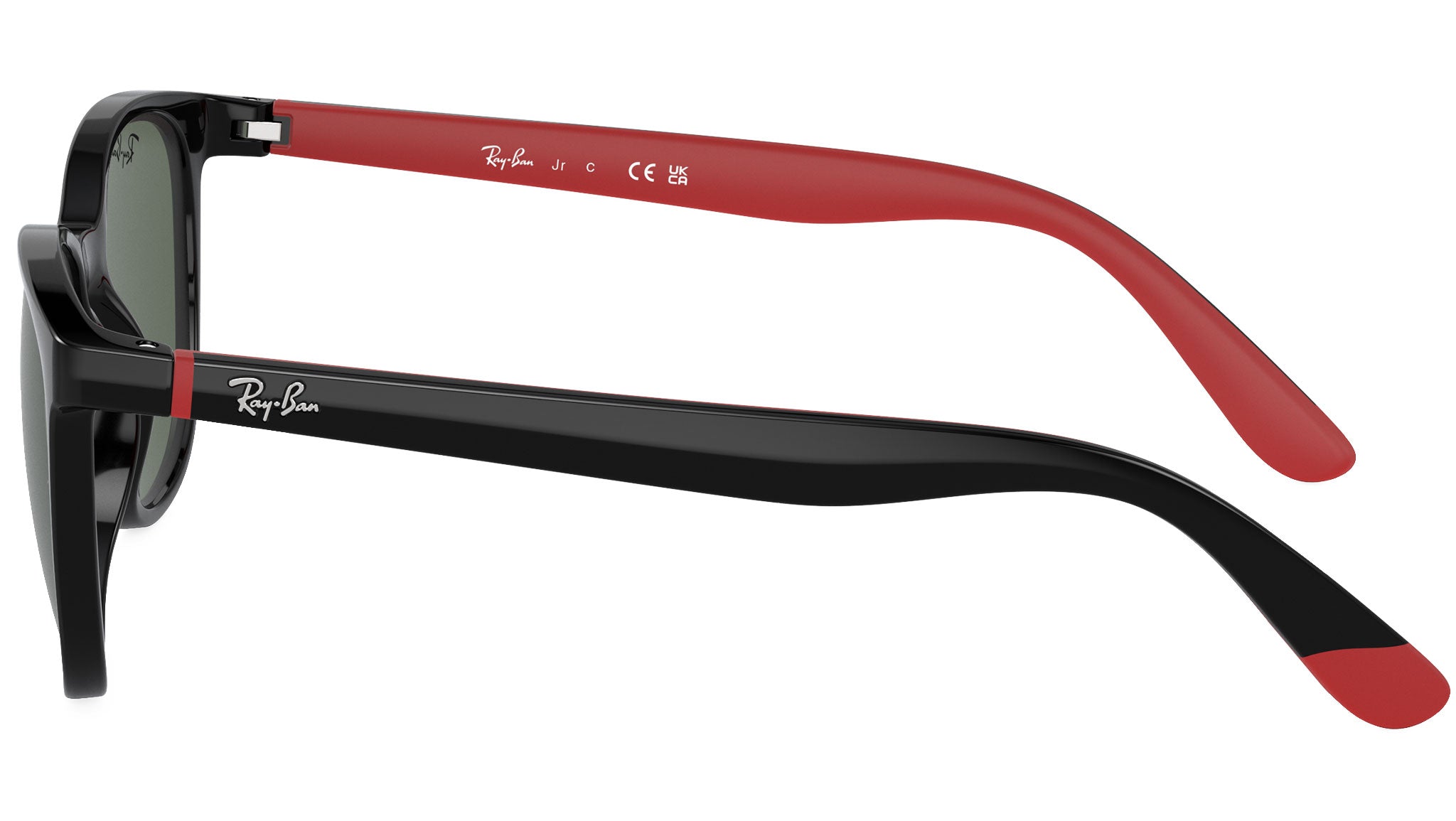 Occhiali da sole Ray-Ban Kids RJ9079S in iniettato codice colore 713171 nero su rosso. Forma quadrata unisex full rim con lenti verde scuro. Con custodia originale e garanzia. Rivenditore autorizzato Ray-Ban.