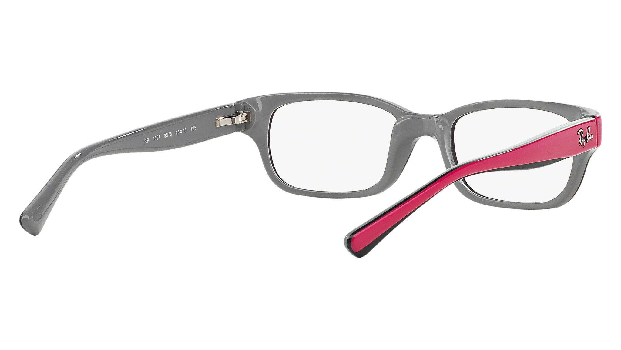 Occhiali da vista Ray-Ban Kids RY1527 color fuxia in acetato codice colore 3575. Forma rettangolare full rim con lenti demo. Con custodia originale e garanzia. Rivenditore autorizzato Ray-Ban.