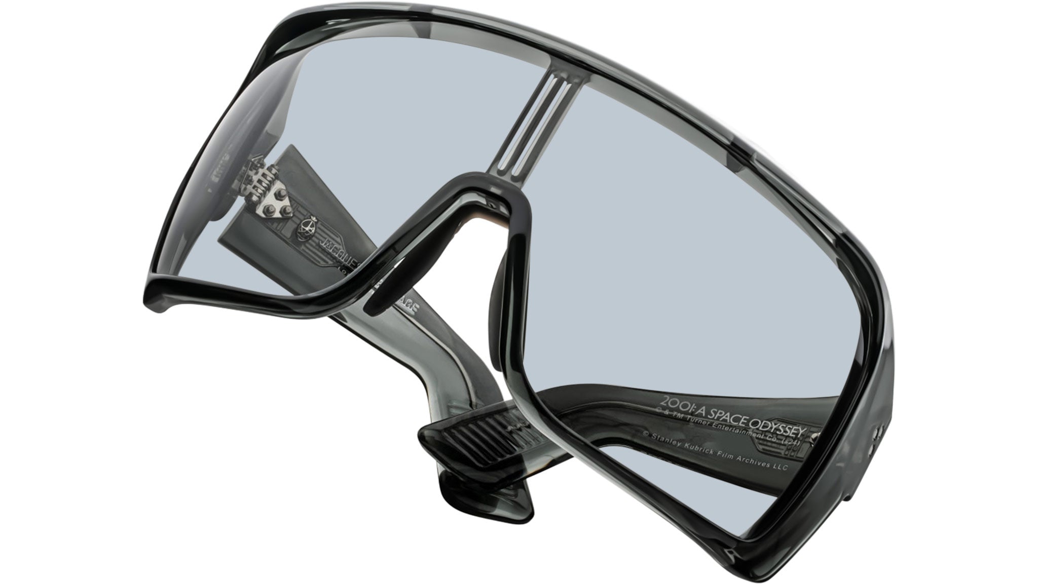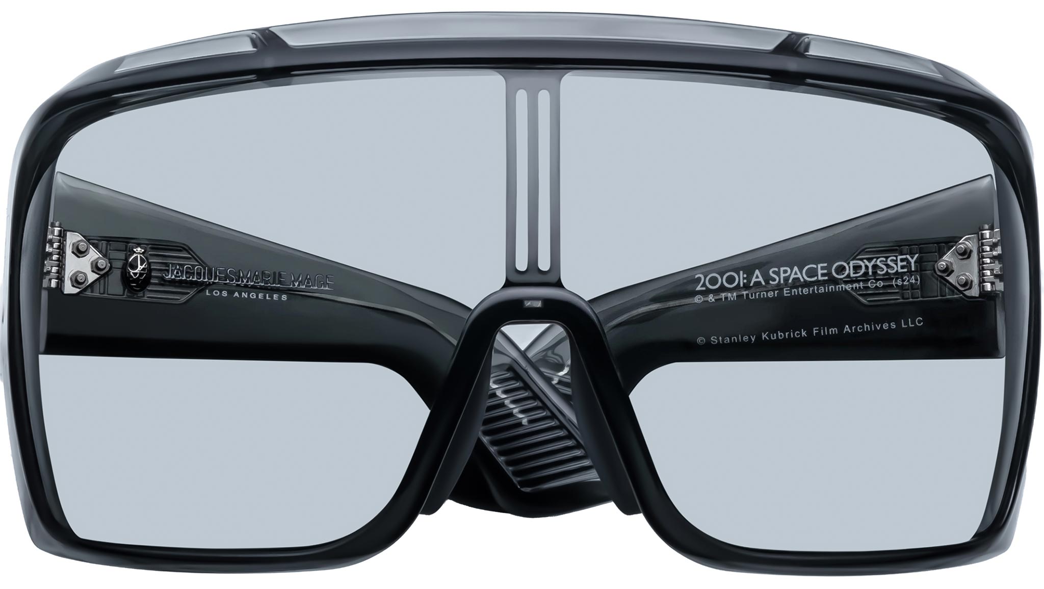 The Jacques Marie Mage 2001 is an oversized, wrap-around visor design handcrafted in Italy, embodying bold, monolithic sophistication inspired by the iconic helmets worn by the astronauts in 2001: A Space Odyssey (1968). Featuring signature silver spur-shaped rivets and custom hinges, the frame is engineered with a clear rubber nose bridge for enhanced comfort and fit. These extraordinary sun shields reflect unconventional craftsmanship and futuristic elegance, merging cinematic inspiration with meticulous Italian artistry to create a striking and distinctive statement piece.