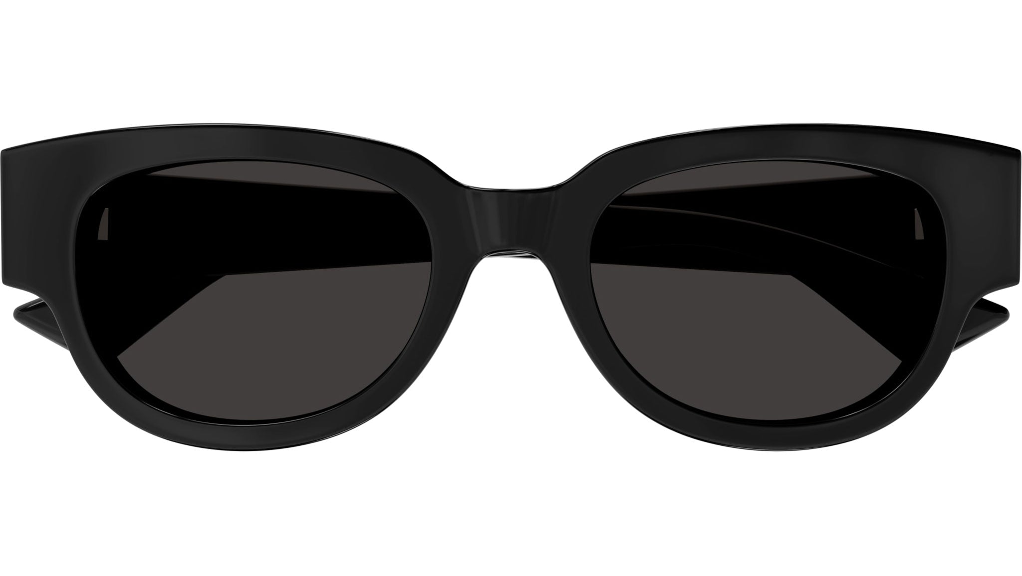 Occhiali da sole Bottega Veneta modello BV1278SA linea New Classic codice colore 001 nero lucido tinta unita in acetato riciclato forma cat eye con lenti color grigio tinta unita.