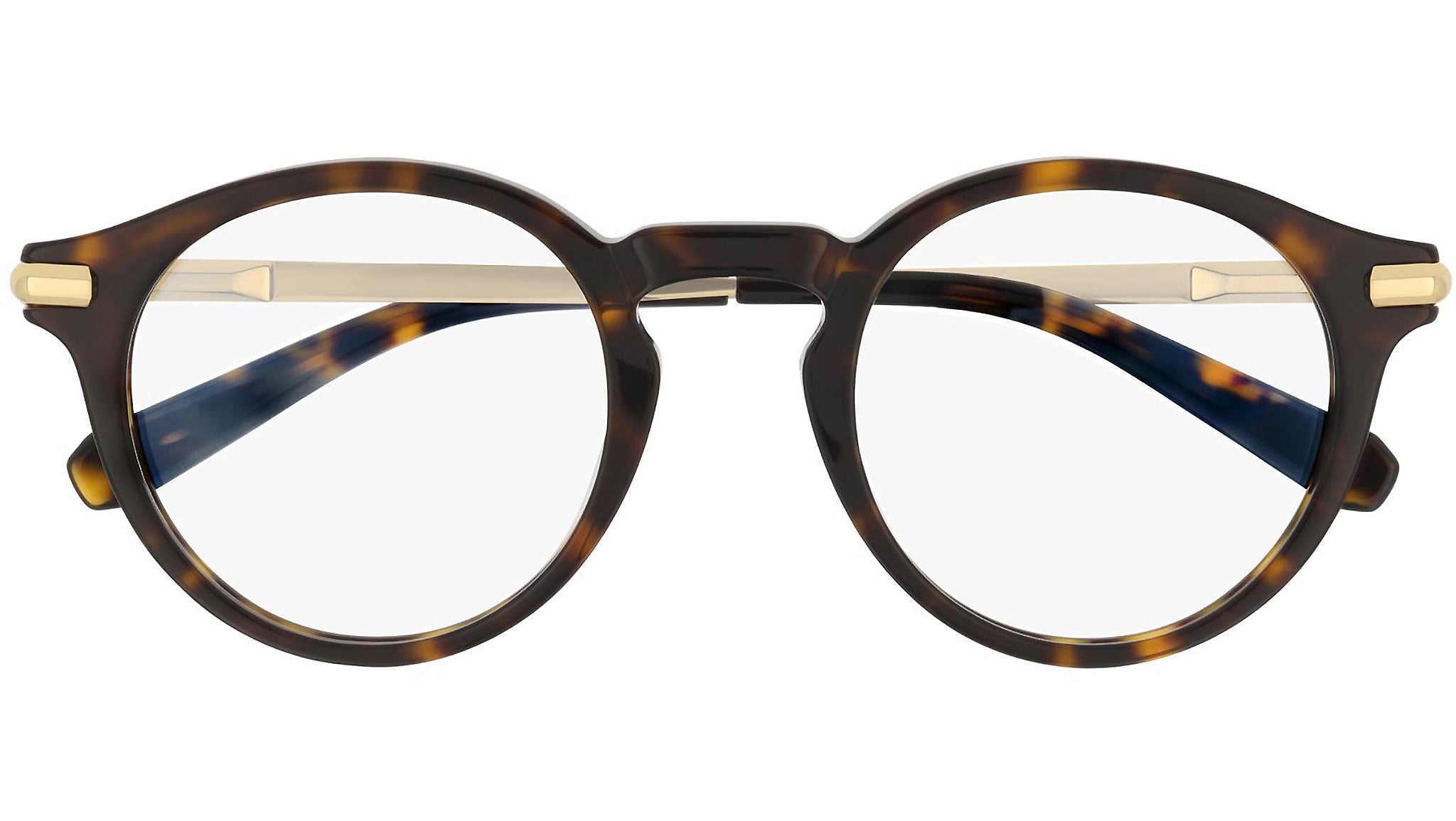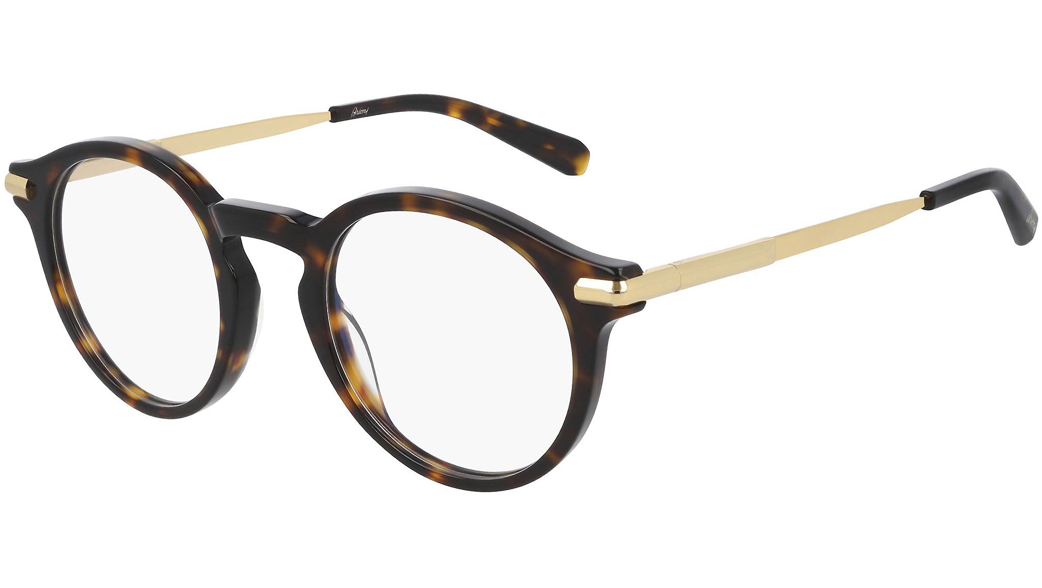 Occhiali da vista Brioni linea Casual Luxury modello 0072O, variante colore 002 tartaruga scuro lucido con astine color oro.