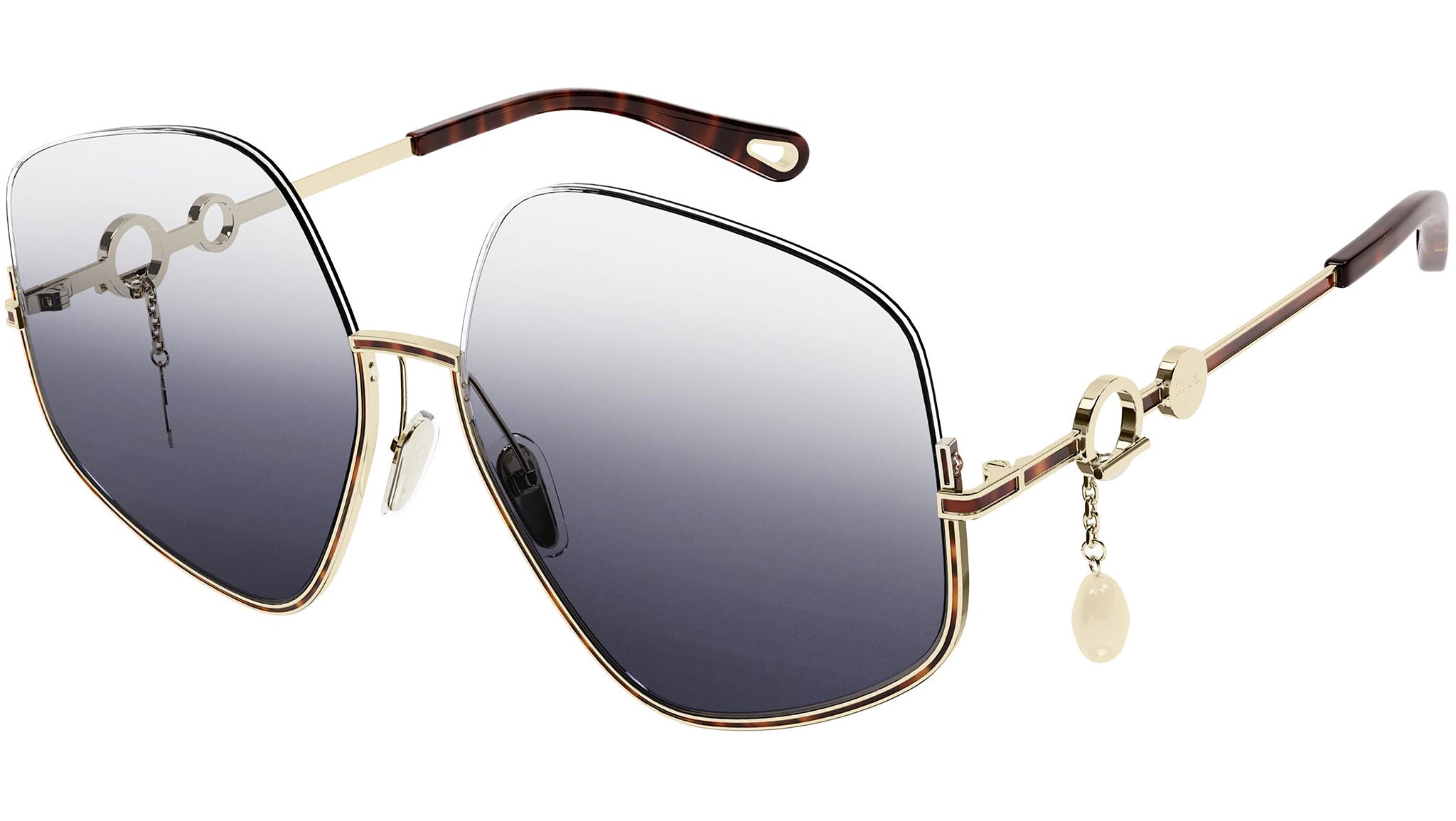 Occhiali da sole Chloé modello CH0068S 001, variante colore oro lucido classico con lenti color blu sfumato. Nelle ultime stagioni, Chloé si è guadagnata il favore dell'industria della moda e dei consumatori di tutto il mondo, come brand sofisticato che incarna pienamente i valori della femminilità moderna, della grazia, della fiducia e della disinvoltura. La Maison parigina è riconosciuta per il suo fascino naturale, che bilancia il savoir-faire dei couturier di alta gamma con un'attitudine giovanile.