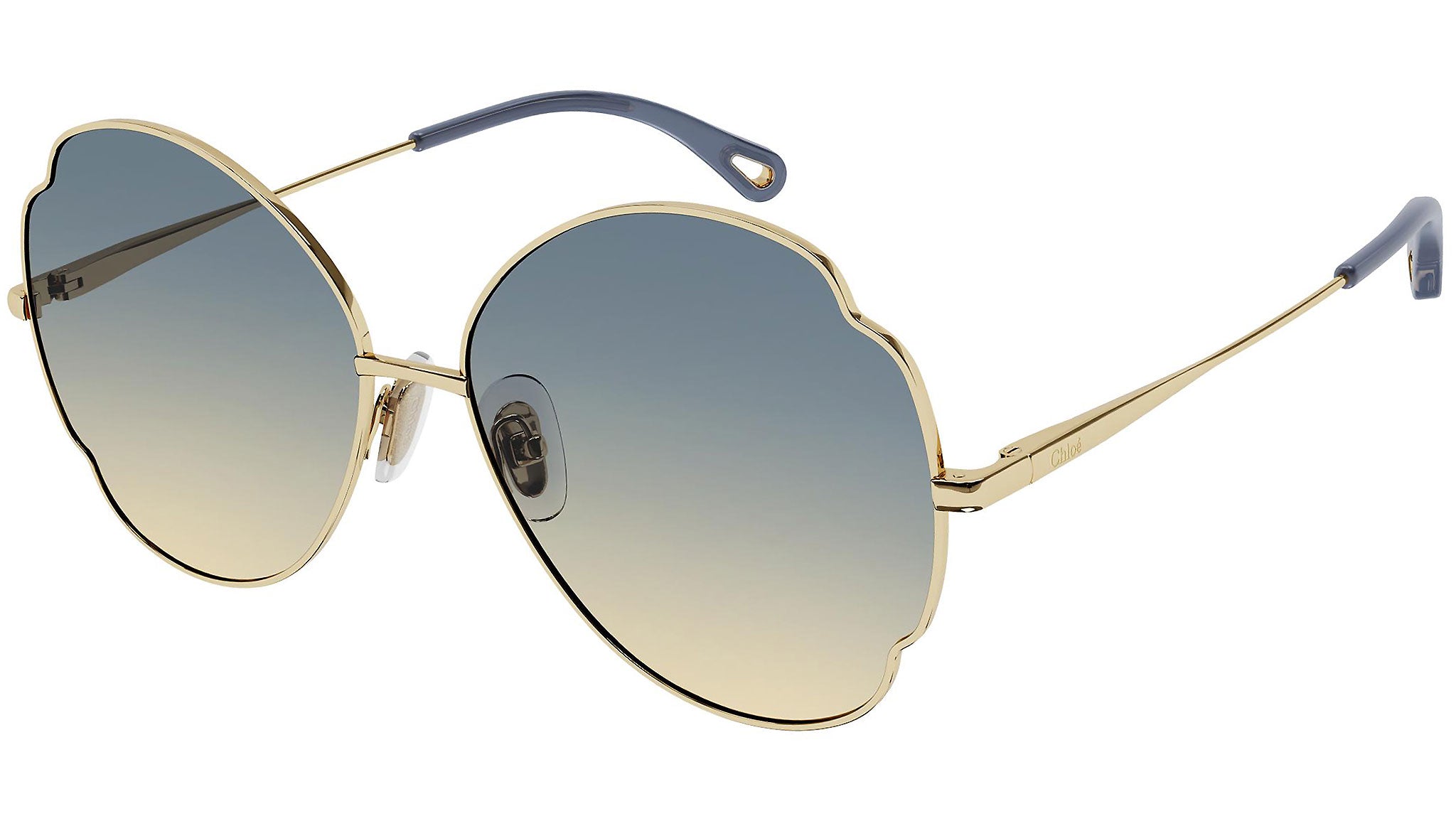 Occhiali da sole Chloé modello CH0093S 002, variante colore oro lucido classico con lenti color doppia sfumatura grigio e giallo.