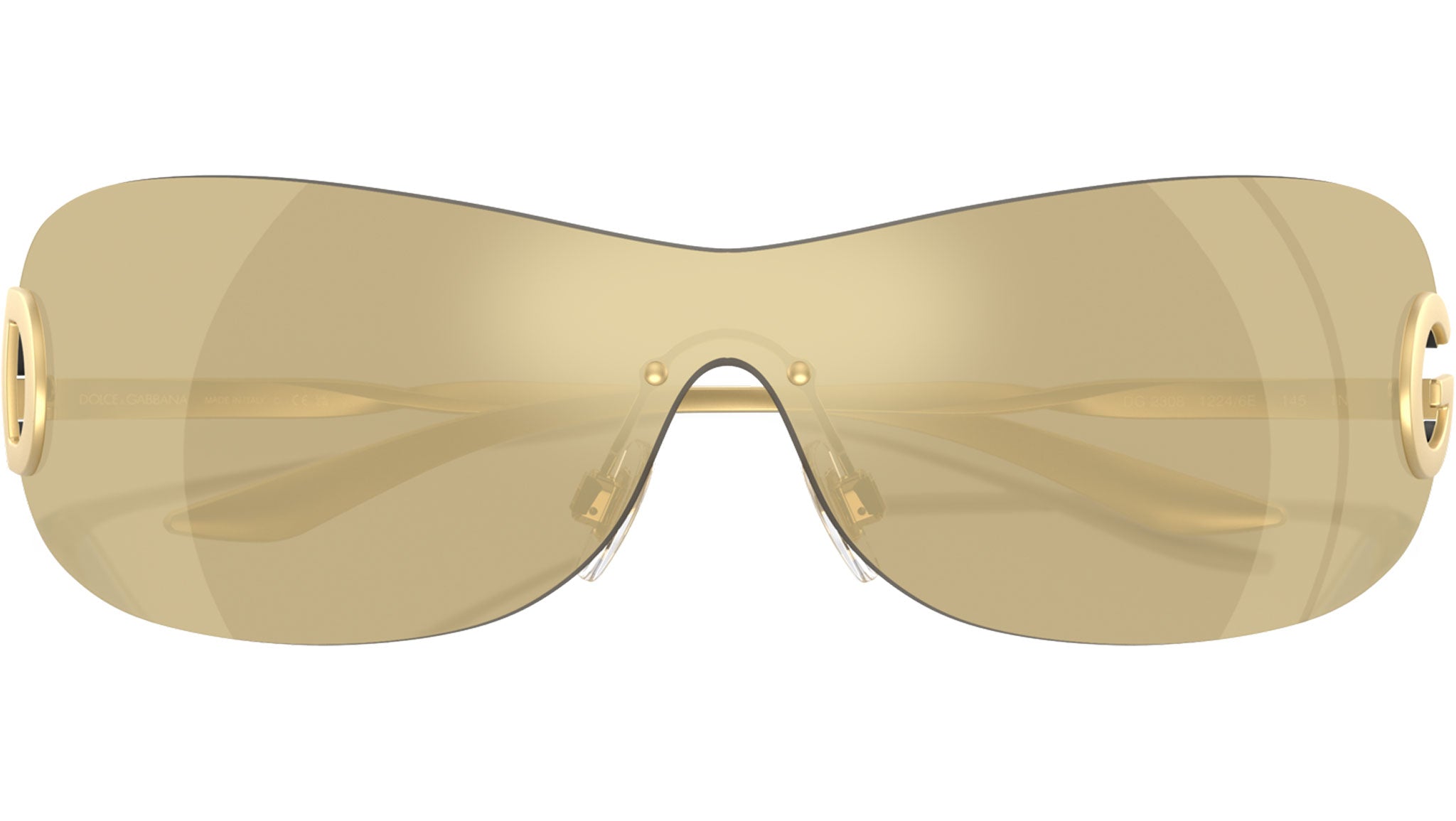 Occhiali da sole Dolce & Gabbana unisex modello 2308 con montatura rimless oro opaco in metallo e lenti mask - 9c/150 bispherical in nylon oro specchio marrone chiaro. Naselli regolabili. Linea: Active. Codice modello: DG2308. Codice colore: 12246E. Taglia: M adatta a un viso medium. Rivenditore online autorizzato Dolce & Gabbana. Gli occhiali vengono forniti con la custodia e gli accessori originali e sono coperti da una garanzia globale di 12 mesi.