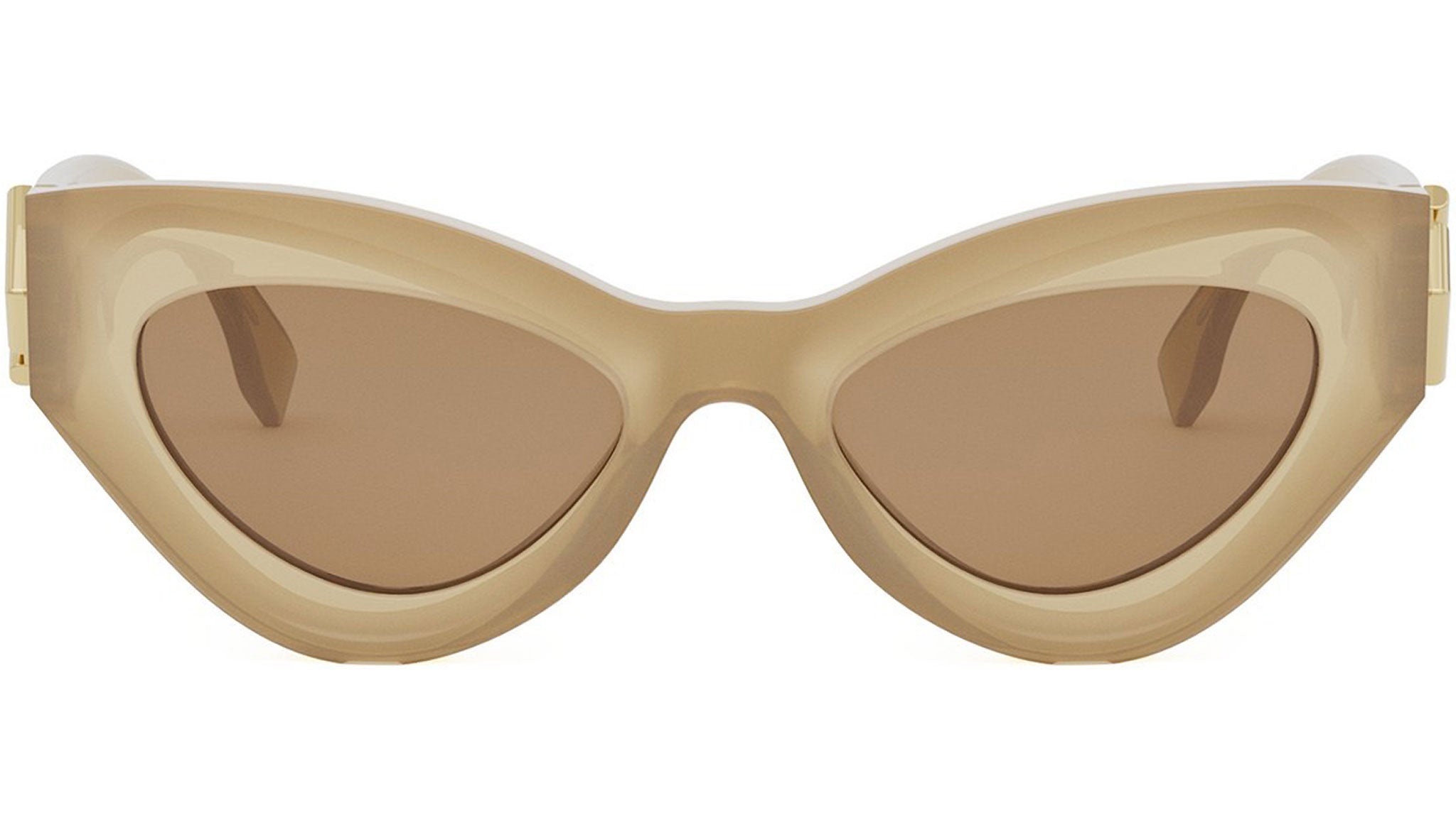 Occhiali da sole FENDI donna linea FF Diamonds modello FE40146I codice colore 57E beige. FF Diamonds trae ispirazione dal logo omonimo, presente sulla pelletteria di alta gamma FENDI. Audace forma cat eye di grandi dimensioni, con aste spesse. Il frontale deciso è ulteriormente arricchito dalla linea smussata che circonda le lenti. Rivenditore autorizzato FENDI online. Gli occhiali vengono consegnati con custodia e accessori originali.