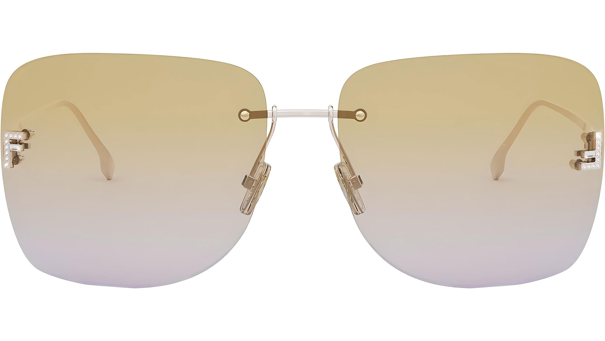 Occhiali da sole FENDI donna linea Fendi First Crystal modello FE4134US codice colore 28E oro rosa. Un'evoluzione dalla forma avvolgente, con dettagli in metallo, della linea Fendi First. Modello senza montatura caratterizzato da lenti sfumate, impreziosite dagli inserti con cristalli. Rivenditore autorizzato FENDI online. Gli occhiali vengono consegnati con custodia e accessori originali.