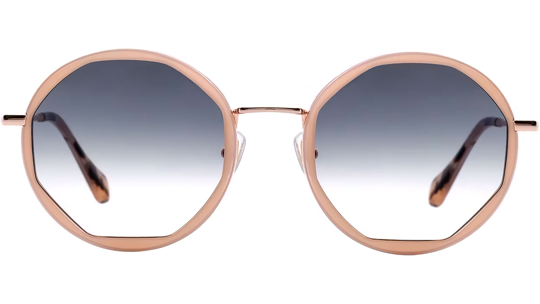 Occhiali da sole Gigi Studios modello 6445 Alba codice colore 6 in oro rosa. Un occhiale classico di forma geometric full rim in acetato e metallo con lenti blu sfumato. Il marchio garantisce la massima qualità costruttiva, grazie alla meticolosa selezione dei materiali, in collaborazione con i migliori fornitori italiani, tedeschi e giapponesi. Gigi Studios offre un'esperienza visiva eccezionale con lenti CR-39, confortevoli e sicure, che assorbono efficacemente i raggi UVA e UVB.