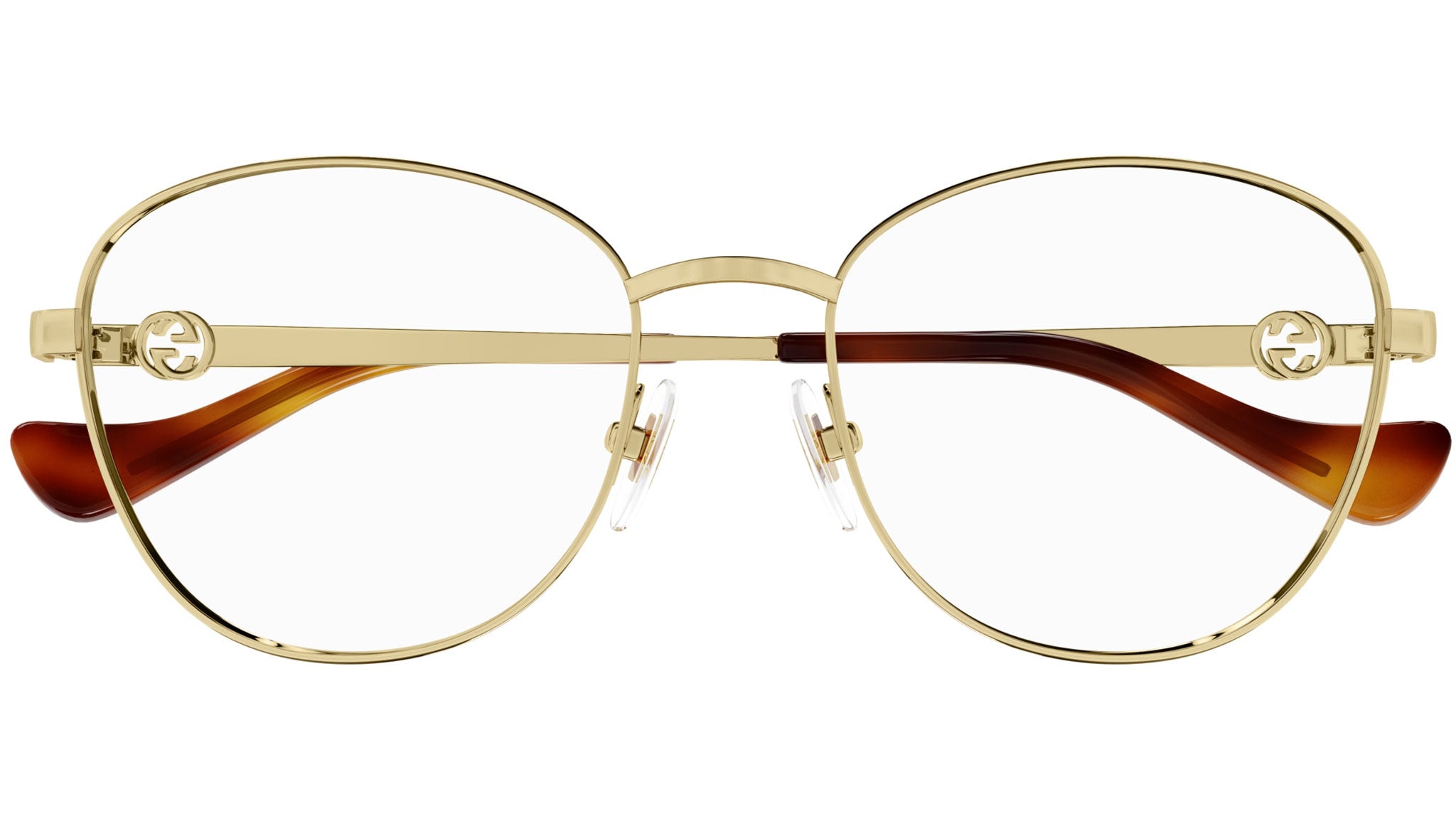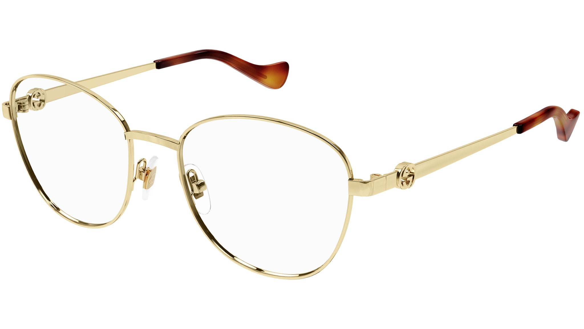 Occhiali da vista Gucci modello GG1601O linea GG Logo in metallo forma pantos codice colore 002 oro endura lucido con aste in oro e lenti demo. Rivenditore autorizzato Gucci online. Gli occhiali vengono consegnati con custodia e accessori originali e sono coperti dalla garanzia ufficiale di 12 mesi del produttore.