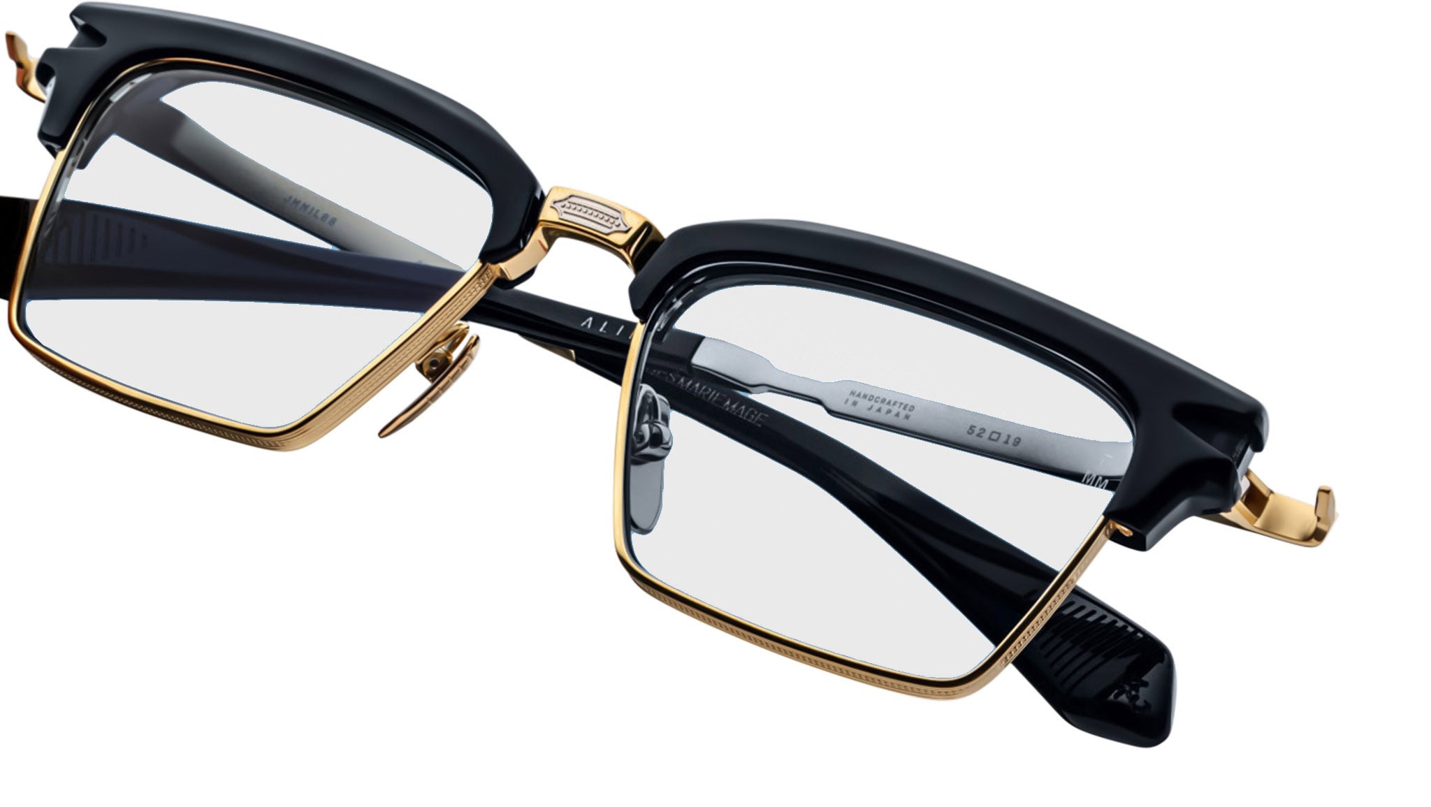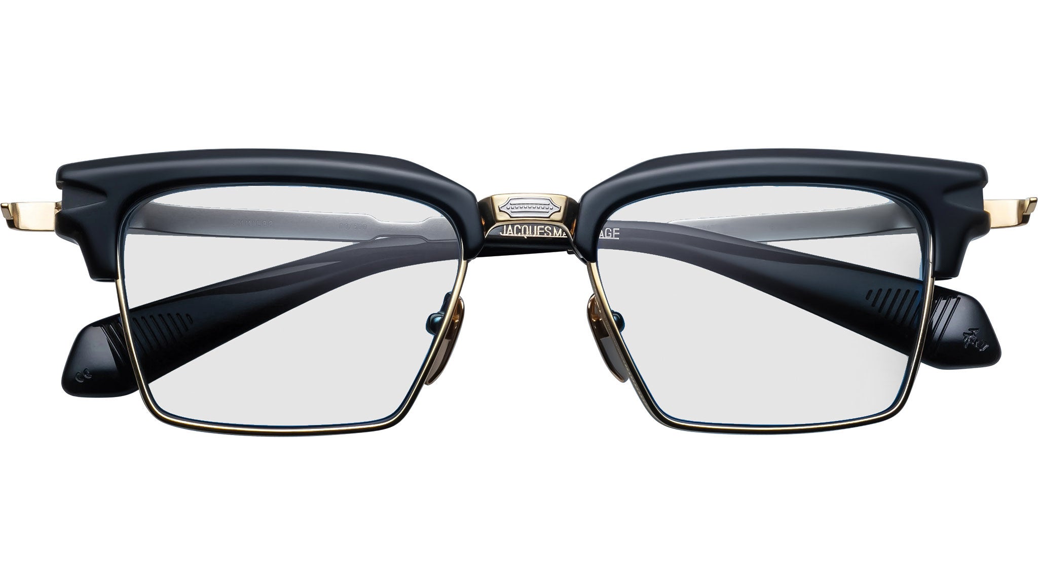 The Alin by Jacques Marie Mage are a refined nod to classic '50s style, combining a bold acetate brow with a sleek square titanium lens rim. Featuring the brand's signature arrowhead monoblock hinge and finely engraved temples with a distinctive arrowhead motif, these spectacles embody sophistication and craftsmanship. Designed for those who appreciate timeless elegance, they offer a perfect balance of vintage inspiration and modern ambition.