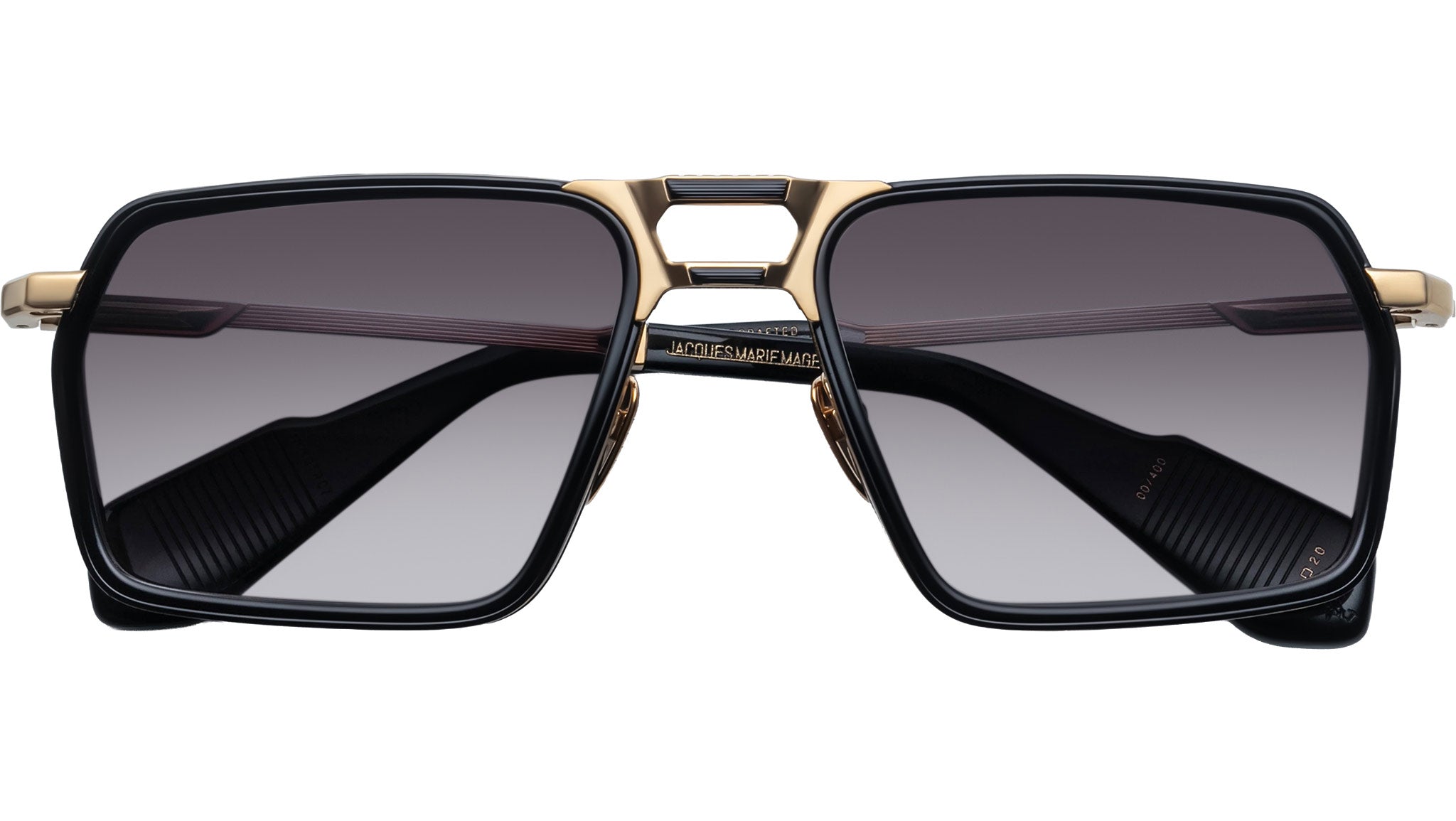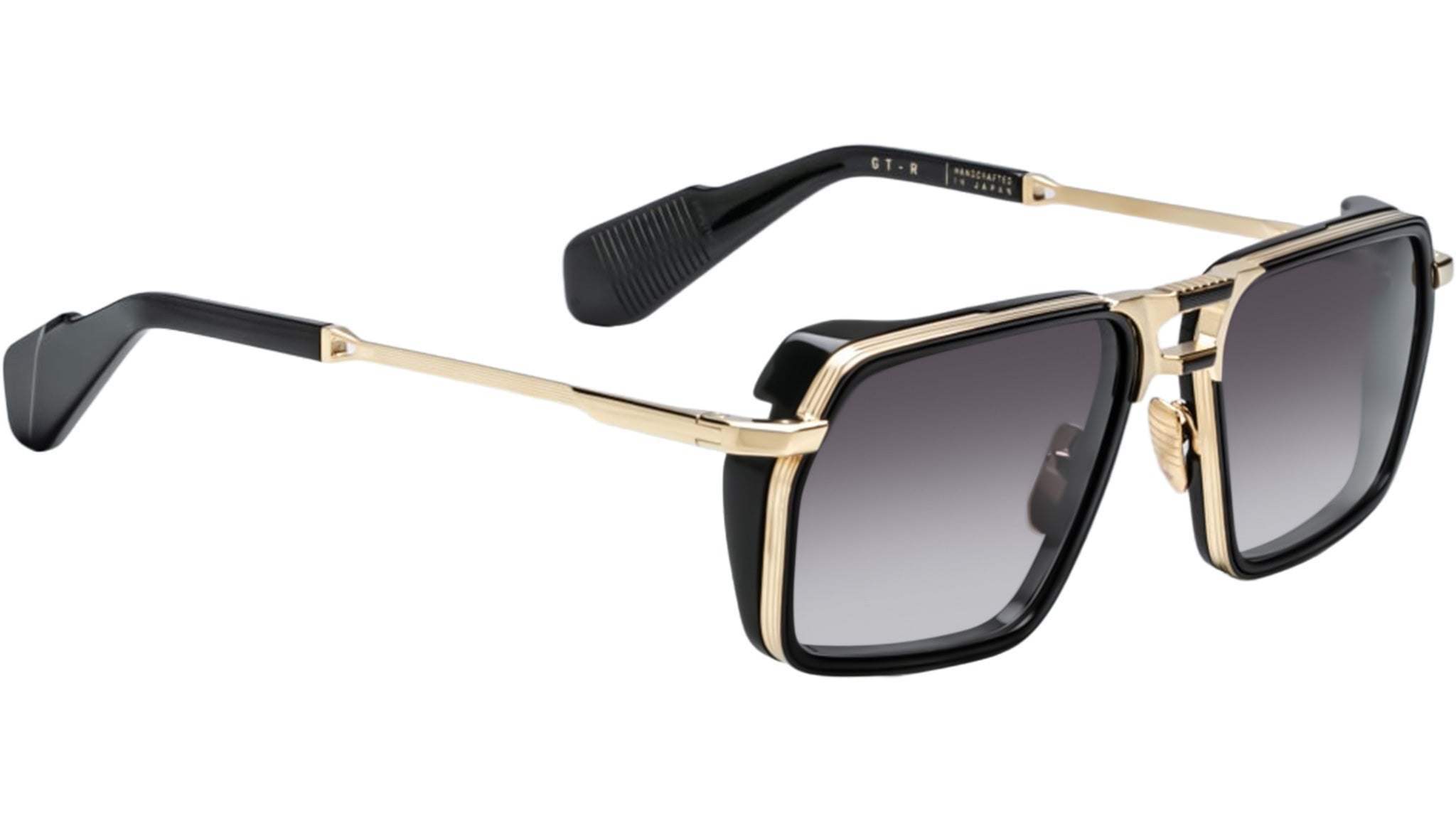 Jacques Marie Mage GT-R sunglasses are '70s-inspired titanium navigators reimagined with bold 12mm acetate lens-rim inserts, dual-tone double-bridge detailing, and sculptural acetate temples. Engineered for lightweight strength and visual impact, this design captures the sleek elegance and performance-driven spirit of a classic roadster, blending retro character with modern craftsmanship in a limited-edition silhouette.