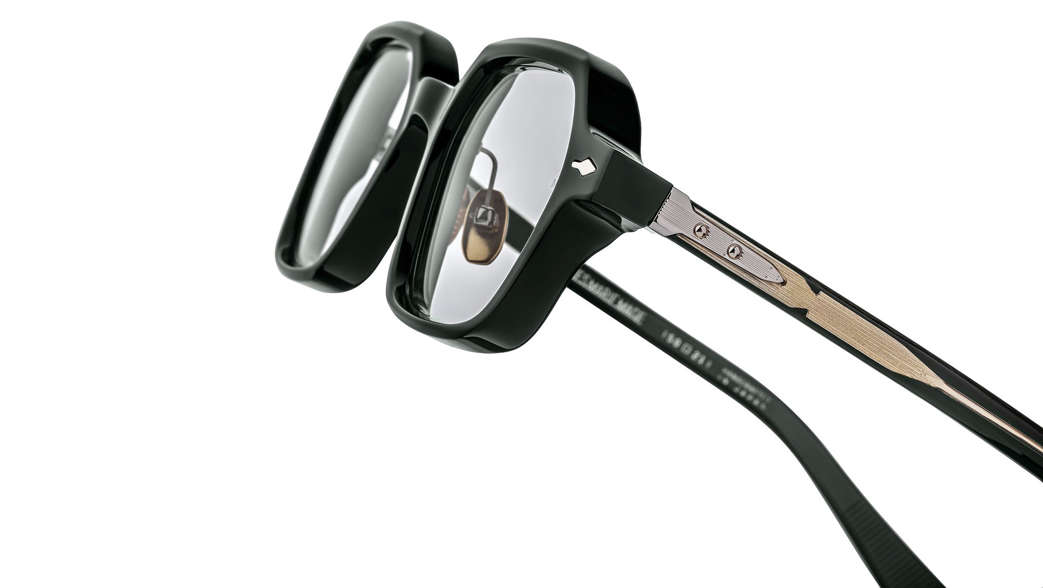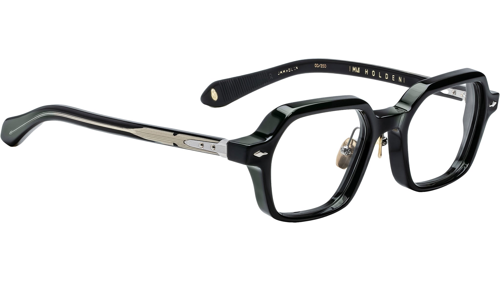 The Jacques Marie Mage Holden RX opticals are a striking and balanced design, featuring alluring hexagonal angles and crafted with meticulous attention to detail. These frames showcase the signature monoblock hinge, titanium nose pads, and 'Blow-dart' wirecores with dramatic hairline engravings. Perfect for those who embrace creativity and bold expression, the Holden RX invites you to explore color, perspective, and the art of living, blending form and function into a celebration of individuality and natural beauty.