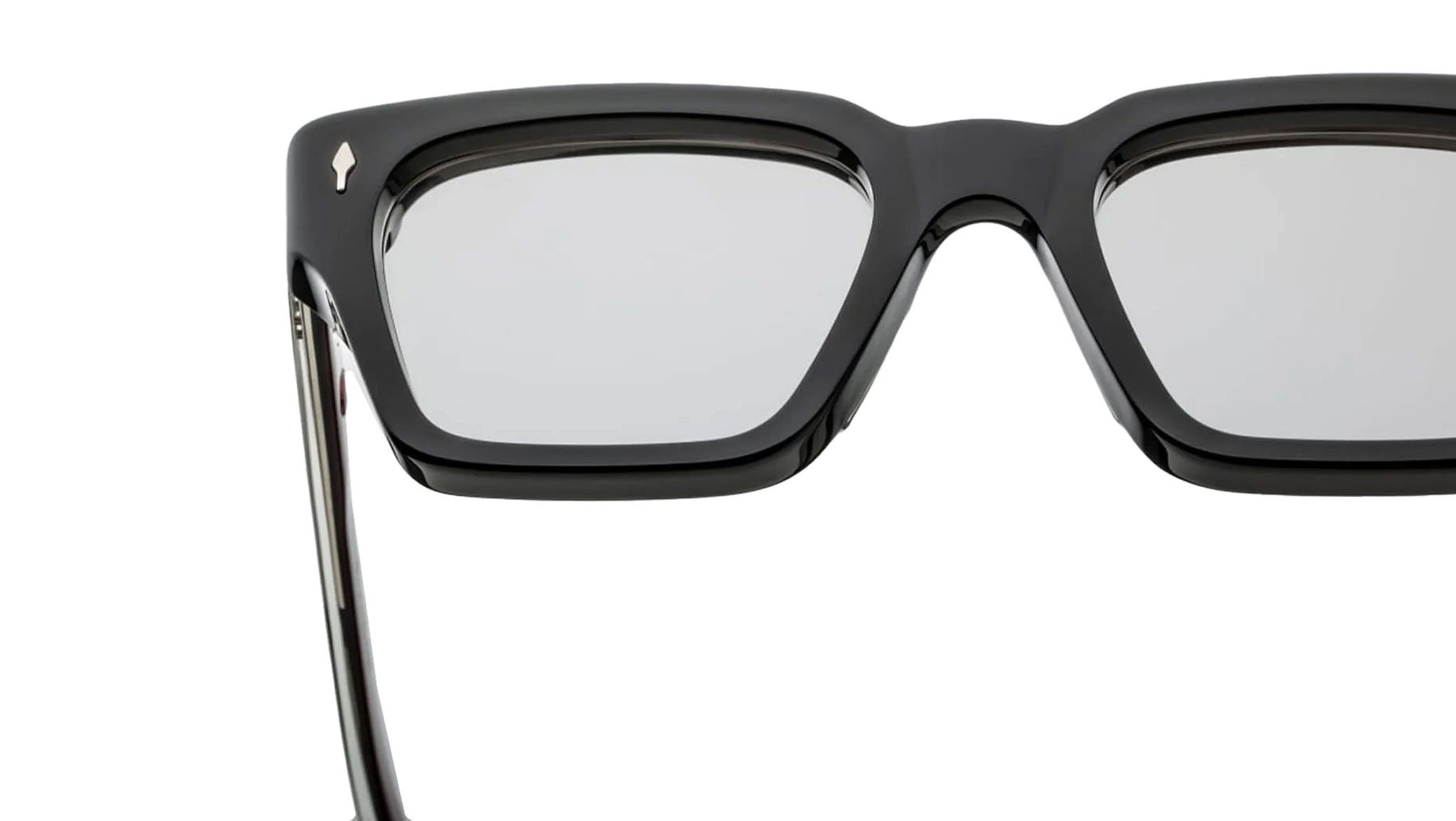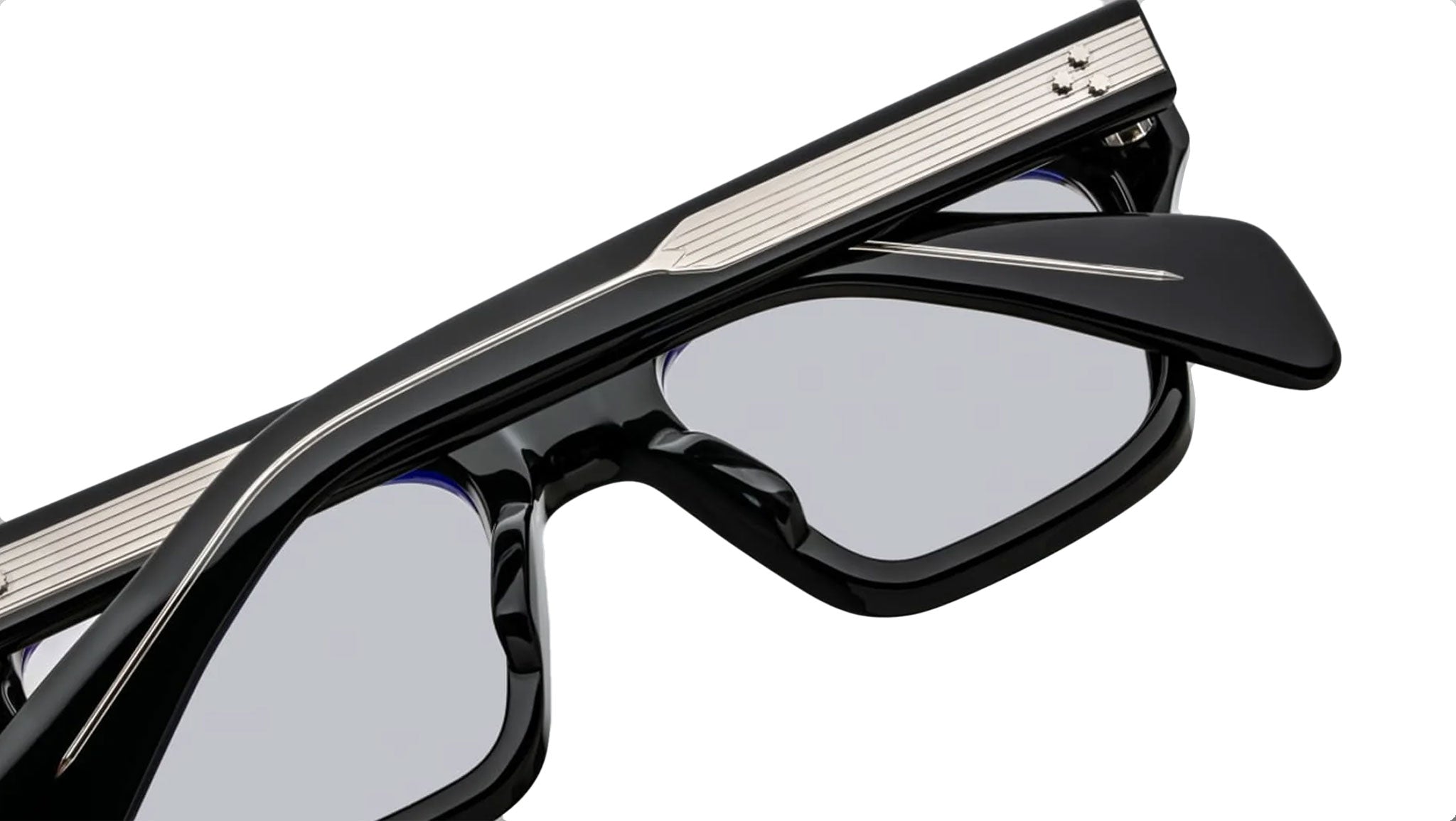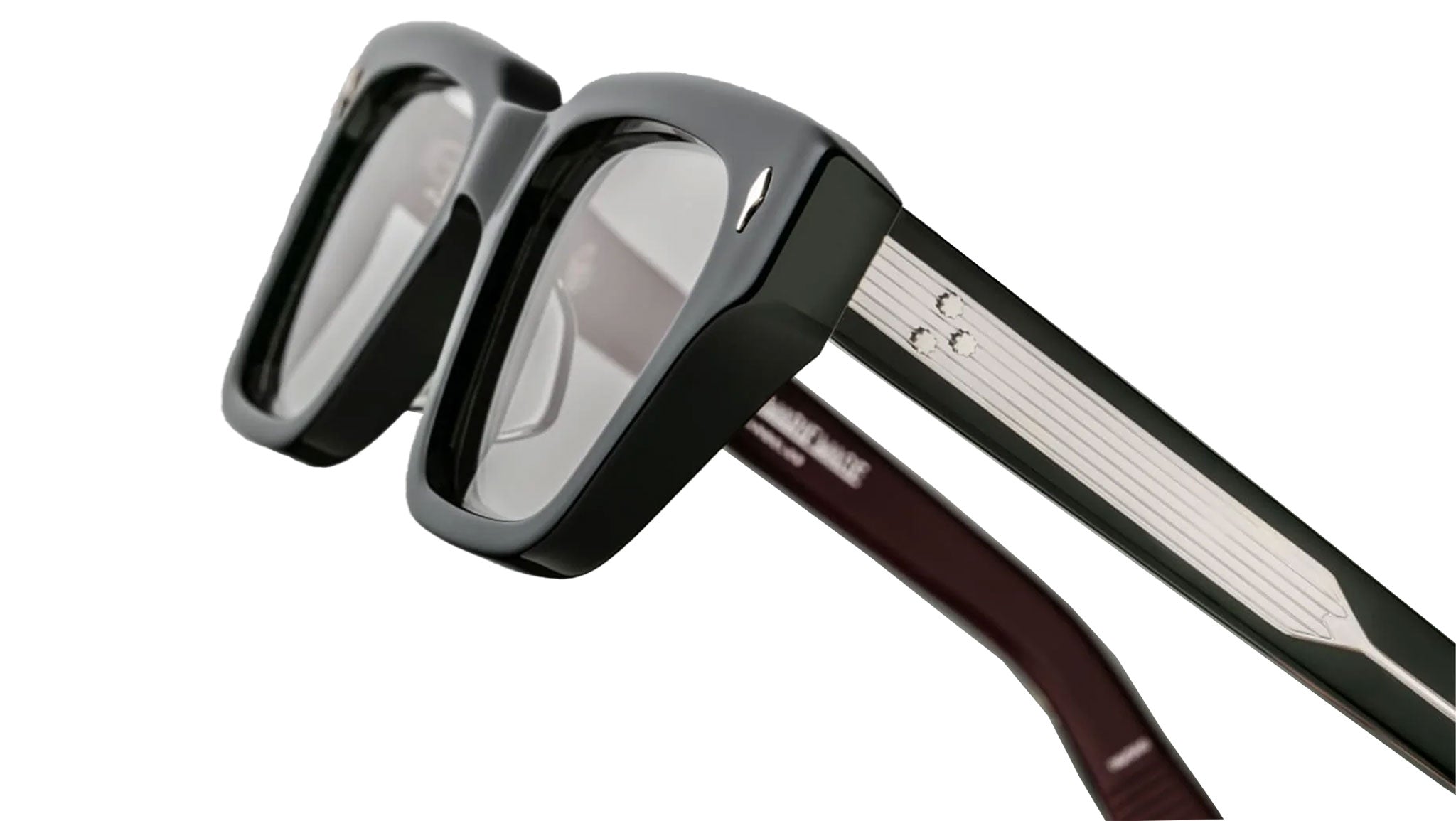 Curated 10mm black acetate frame. Custom double laminated acetate temples featuring precious metal hardware in sterling silver.