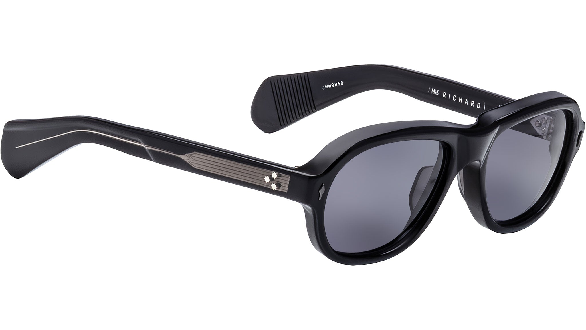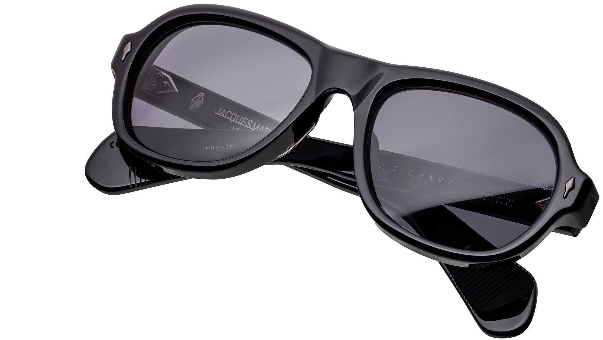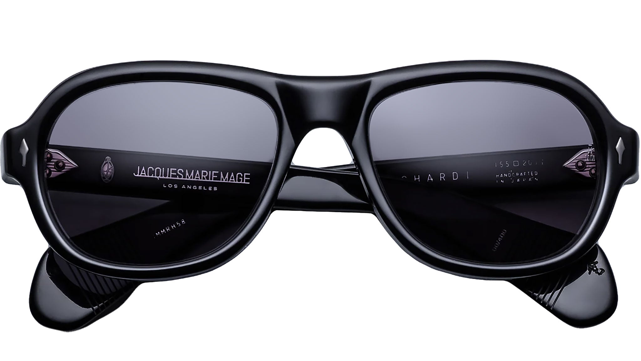 The Jacques Marie Mage Richard sunglasses are mid-sized, handcrafted frames featuring a modern aviator shape, distinguished by signature double-arrowhead front pins and comfortable spatula temples. Inspired by the artistry and resourcefulness of modern fashion photography, these limited-edition spectacles embody self-assured expression and timeless sophistication. Meticulously crafted, the Richard offers a refined balance of bold design and enduring elegance, making a statement that speaks volumes.