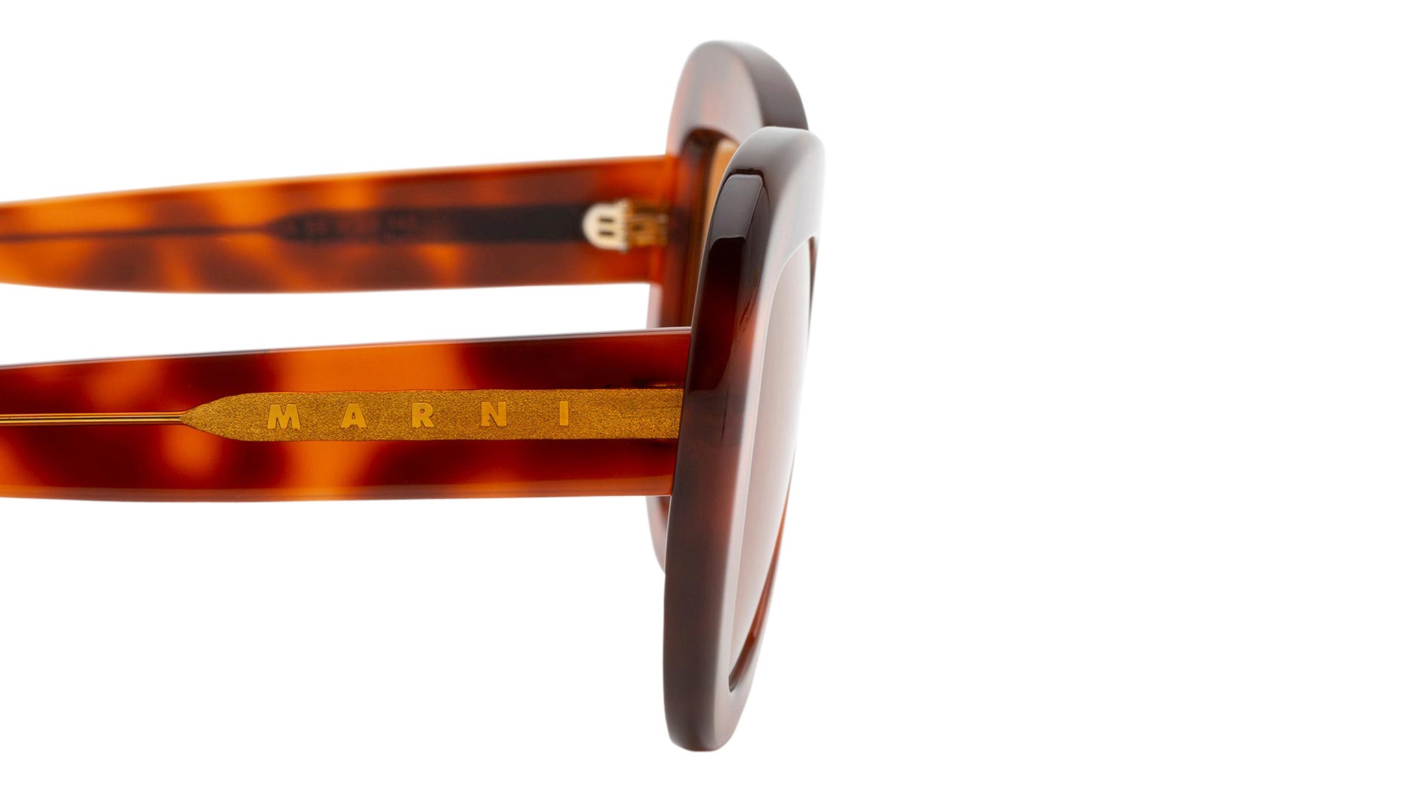 Designed exclusively for Marni, Elephant Island is an all-acetate interpretation of classic aviator silhouettes. The model features thick rims carefully curved on the sides and a sturdy lowered nose-bridge. A metal core with engraved Marni logo is encased on the temples. This version comes in a warm Havana acetate with black lenses. Sizes: R Lens Width: 55 mm. Frame Front: Frame Side: 145 mm. Product Code Size R: 5UA