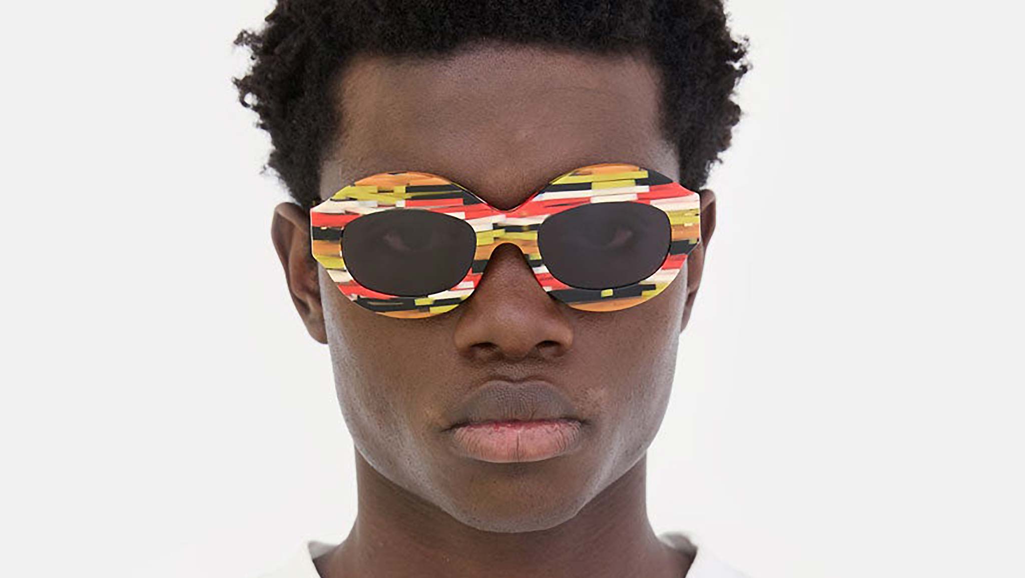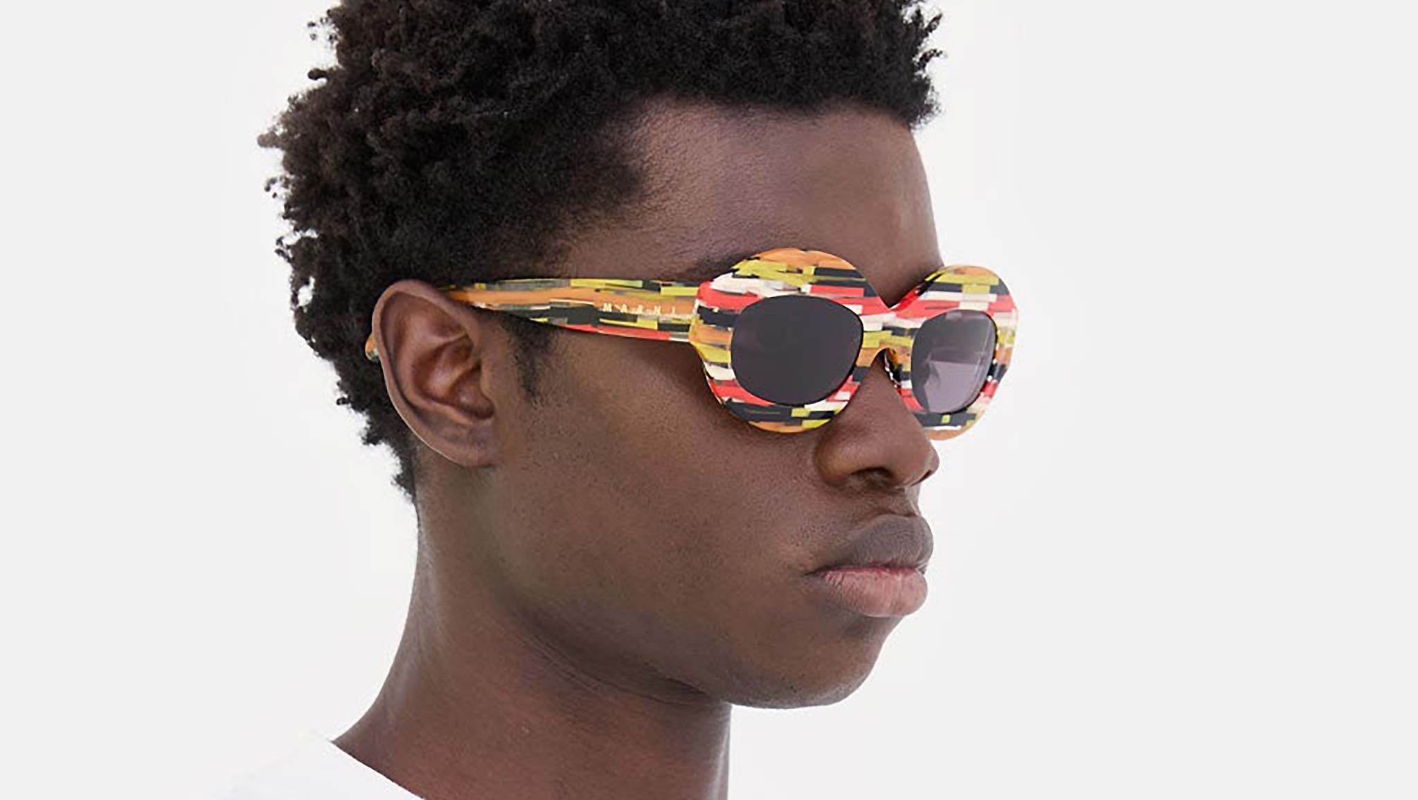 Marni Ik Kil Cenote Spacey Stripey sunglasses. Unique and custom-made high grade Italian acetate mounting the finest Carl Zeiss extra black lenses in base 4. Premium eyewear handmade in Italy. Sizes: R Lens Width: 54 mm. Frame Front: Frame Side: 145 mm. Product Code Size R: VJU.