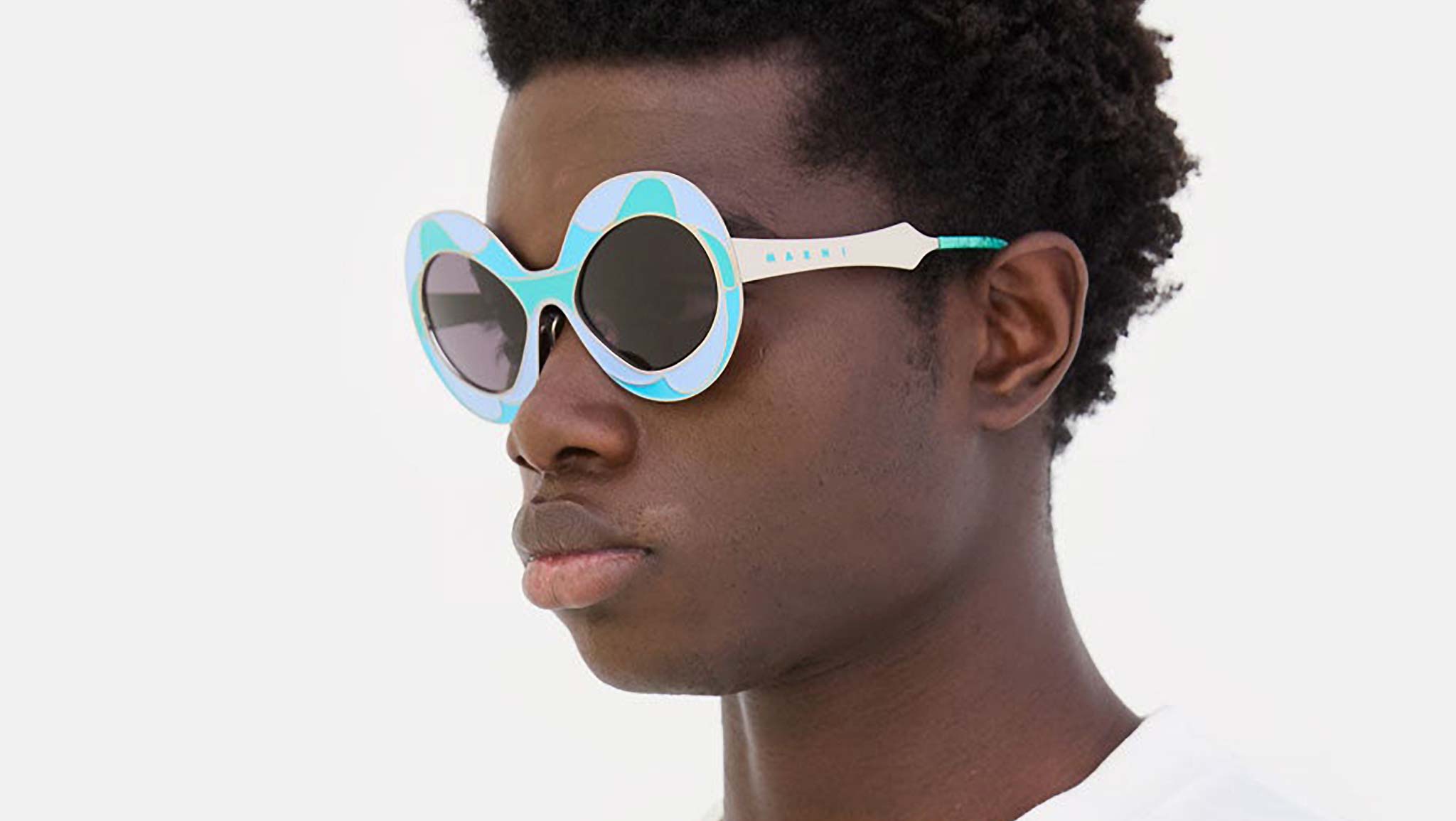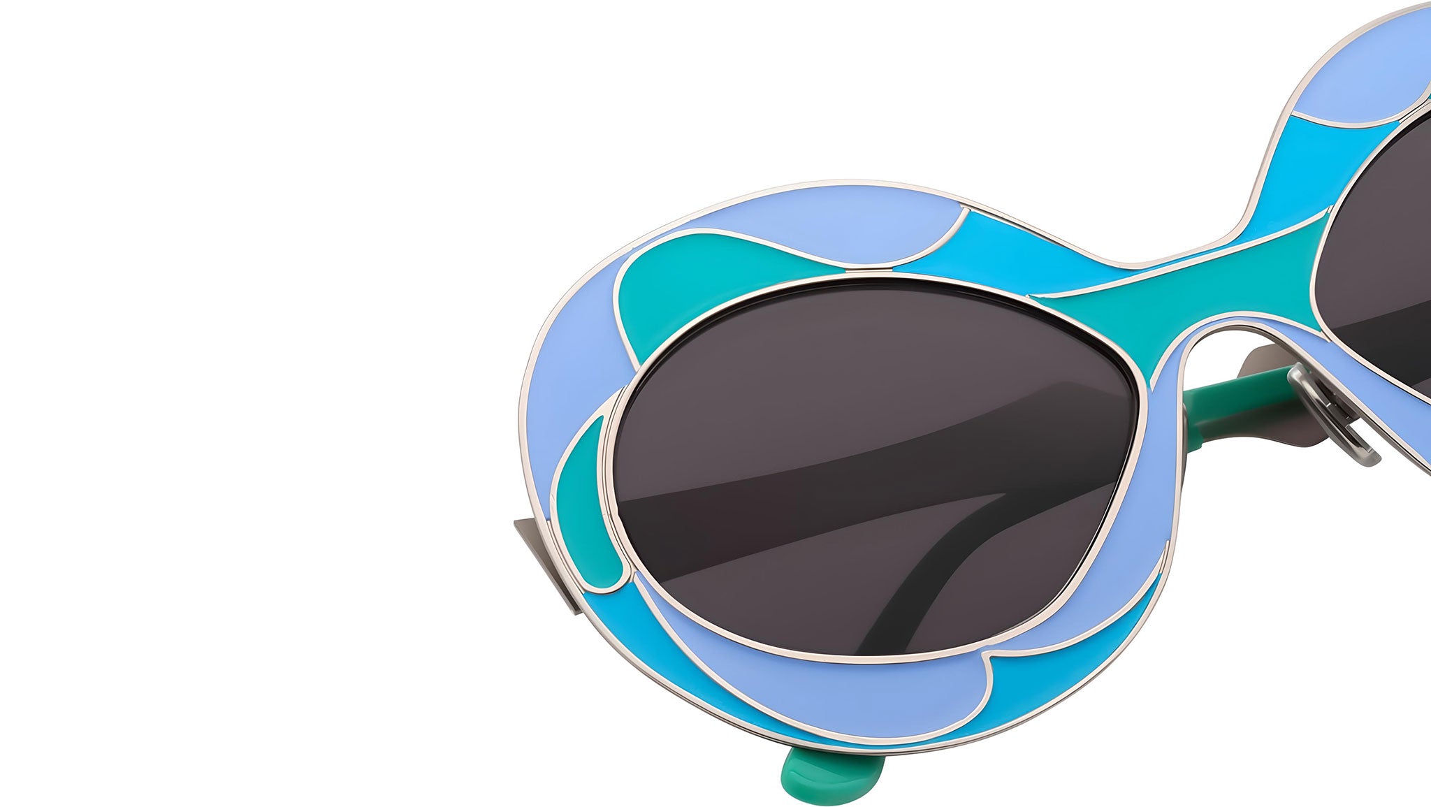 Marni Janavaaru Fontana sunglasses. Unique and custom-made Italian metal with hand-painted enamel finishings mounting the finest Carl Zeiss extra black lenses in base 4. Premium eyewear handmade in Italy. Sizes: R Lens Width: 58 mm Frame Front: Frame Side: 150 mm Product Code Size R: GCM