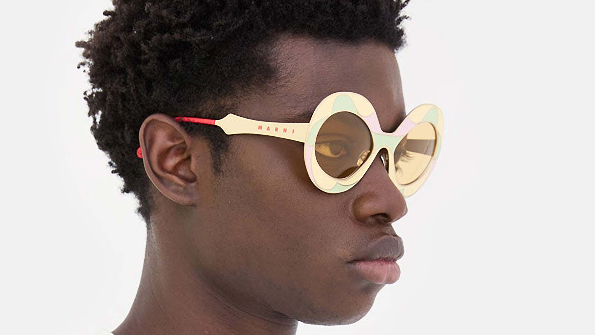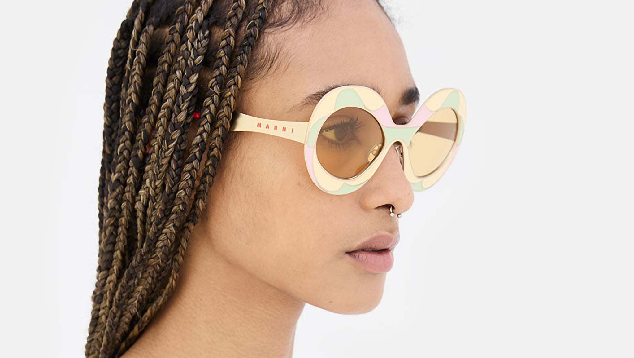 Marni Janavaaru Vaso sunglasses. Unique and custom-made Italian metal with hand-painted enamel finishings mounting the finest Carl Zeiss Mustard lenses in base 4. Premium eyewear handmade in Italy. Sizes: R Lens Width: 58 mm Frame Front: Frame Side: 150 mm Product Code Size R: RCS