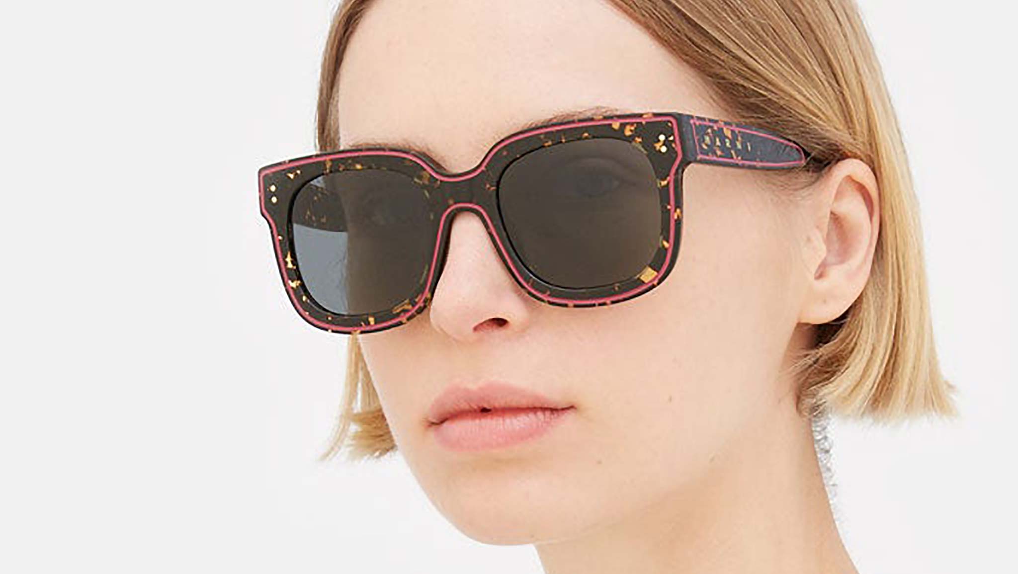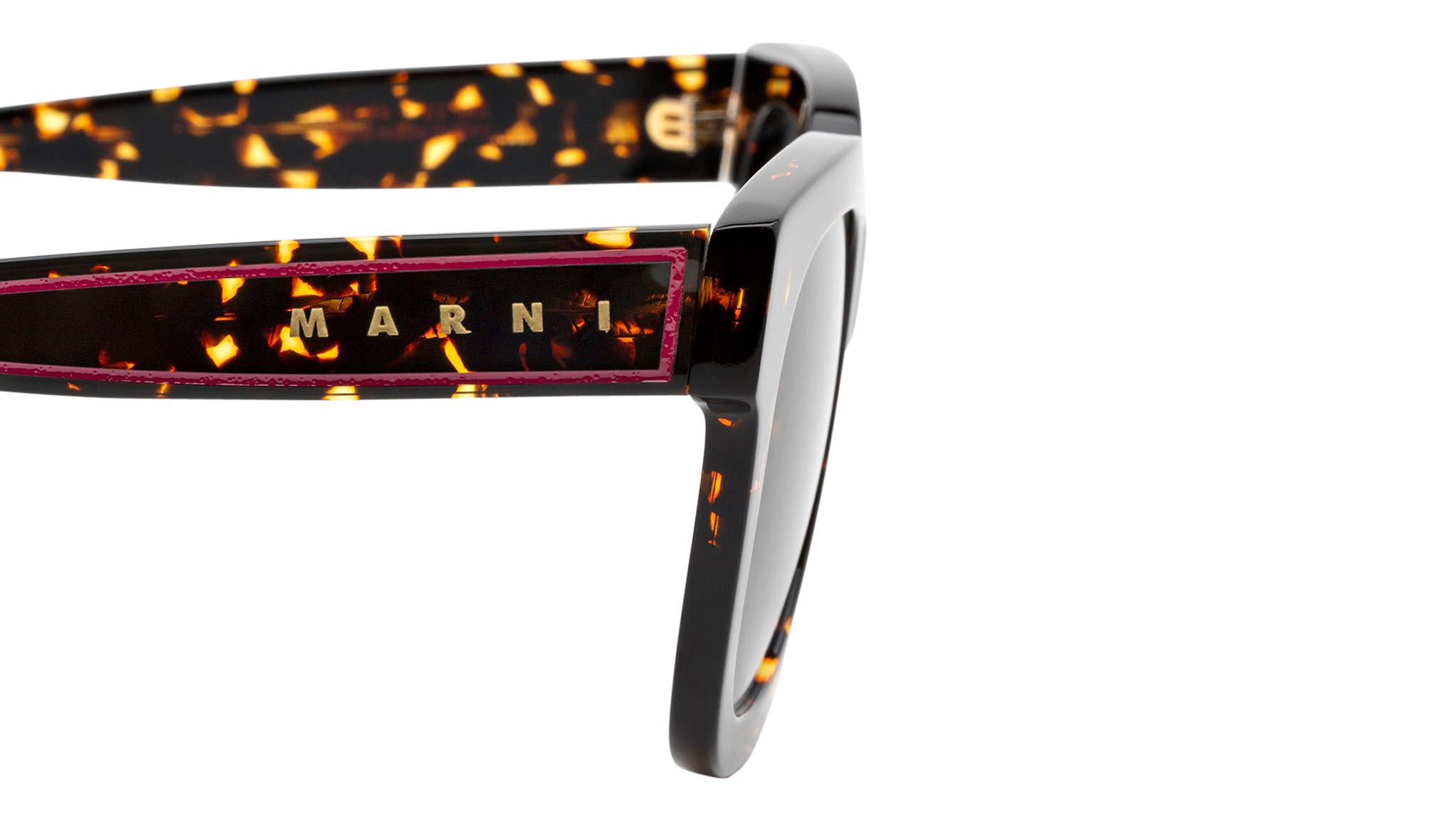 Designed exclusively for Marni, Li River is an iconic oversized silhouette crafted from quality Italian acetate. The shape is characterised by bold squared lenses with geometric temple tips. The front features an engraved line marking the shape’s thick rims. This version features a spotted Havana acetate with red detailing and black lenses. Sizes: R Lens Width: 54 mm. Frame Front: Frame Side: 145 mm. Product Code Size R: 0YK