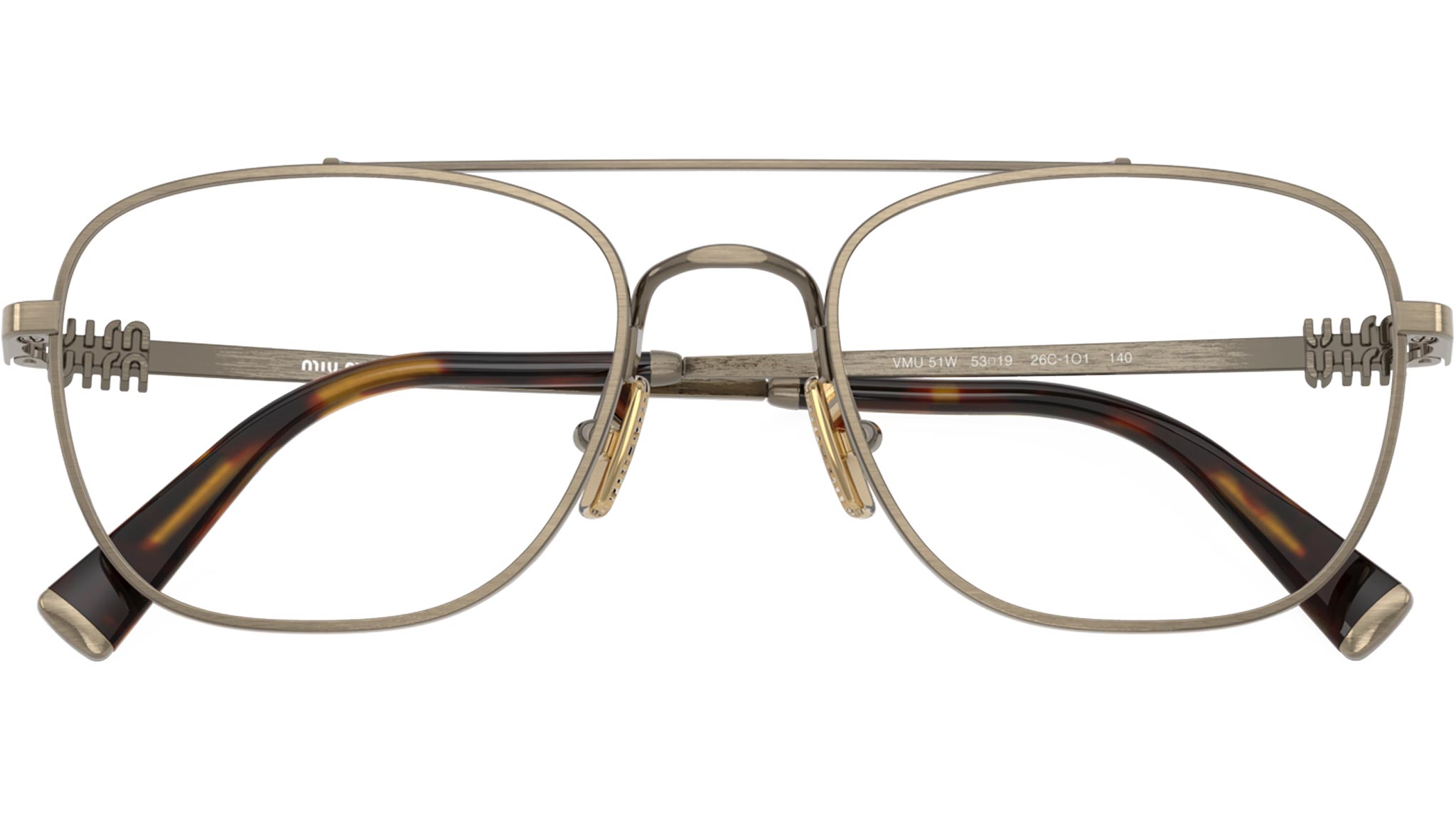 Occhiali da vista Miu Miu MU 51WV 26C1O1 donna con montatura quadrata in metallo oro antico e lenti demo. Naselli regolabili. Linea: Miu Regard. Codice modello: 0MU 51WV. Codice colore: 26C1O1. Made in Italy. Rivenditore autorizzato Miu Miu online. Gli occhiali vengono consegnati con custodia e accessori originali e sono coperti dalla garanzia ufficiale di 12 mesi del produttore.