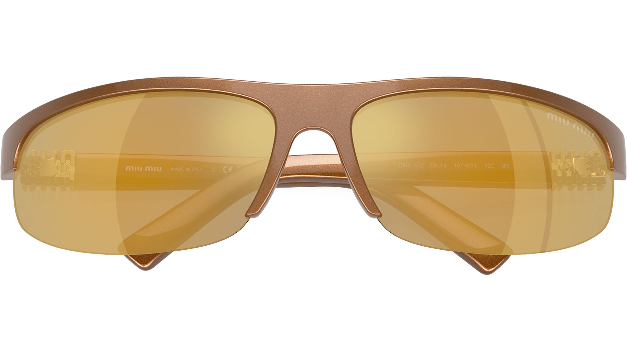 Occhiali da sole Miu Miu MU A02S 16Y8G1 donna con montatura ovale in Injected ruggine e lenti in policarbonato color marrone a specchio oro. Vestibilità a ponte alto. Linea: Fashion Show. Codice modello: 0MU A02S. Codice colore: 16Y8G1. Made in Italy. Rivenditore autorizzato Miu Miu online. Gli occhiali vengono consegnati con custodia e accessori originali e sono coperti dalla garanzia ufficiale di 12 mesi del produttore.