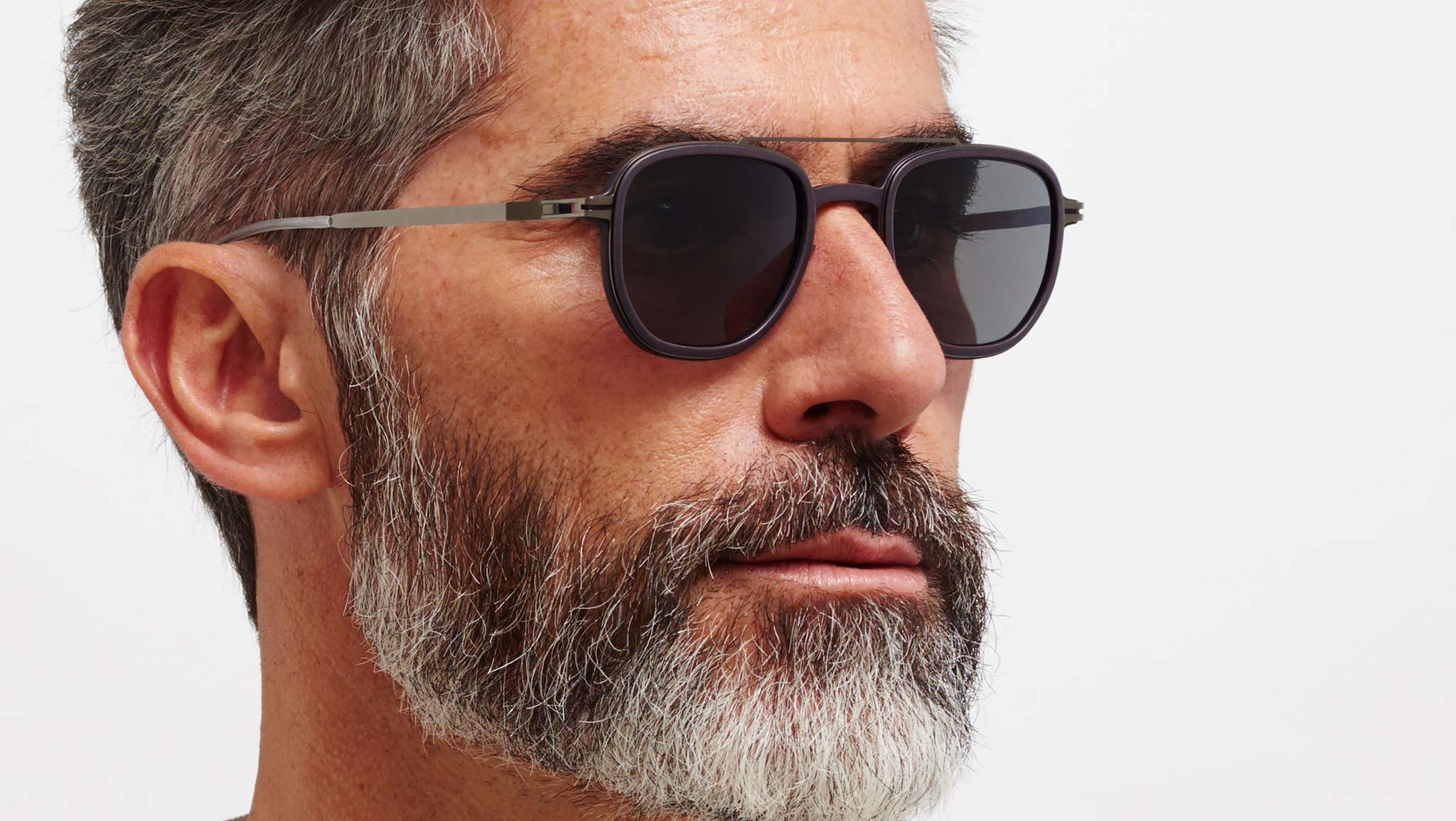 Made of MYLON – an exceptionally light and durable material – ALDER in MH60 Slate Grey/Shiny Graphite with Polarised Pro Hi Con Grey lenses is a square shaped sunglass frame from the MYKITA MYLON collection. Handcrafted in Berlin. Extremely light MYLON front fitted inside steel rims Patented spiral hinge Silicone temple tips and nose pads Individually adjustable Comes with branded eyewear case and cleaning cloth