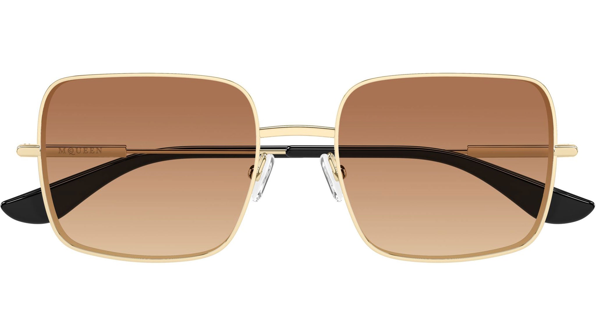 Occhiali da sole Alexander McQueen AM0564S 002 donna con montatura rettangolare in metallo oro chiaro lucido e lenti doppia sfumatura arancione. Linea: T-Bar. Codice modello: AM0564S. Codice colore: 002. Made in Italy. Rivenditore autorizzato Alexander McQueen online. Gli occhiali vengono consegnati con custodia e accessori originali e sono coperti dalla garanzia ufficiale di 12 mesi del produttore.