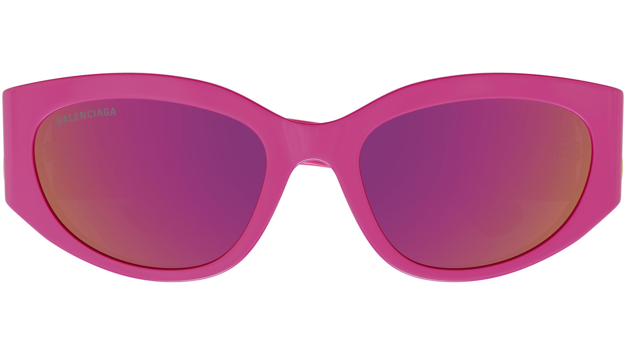 Occhiali da sole Balenciaga BB0324SK 010 donna con montatura pantos in acetato riciclato fuchsia tinta unita lucido e lenti grigio solido a specchio rosa. Linea: Everyday. Codice modello: BB0324SK. Codice colore: 010. Made in Italy. Rivenditore autorizzato Balenciaga online. Gli occhiali vengono consegnati con custodia e accessori originali e sono coperti dalla garanzia ufficiale di 12 mesi del produttore.