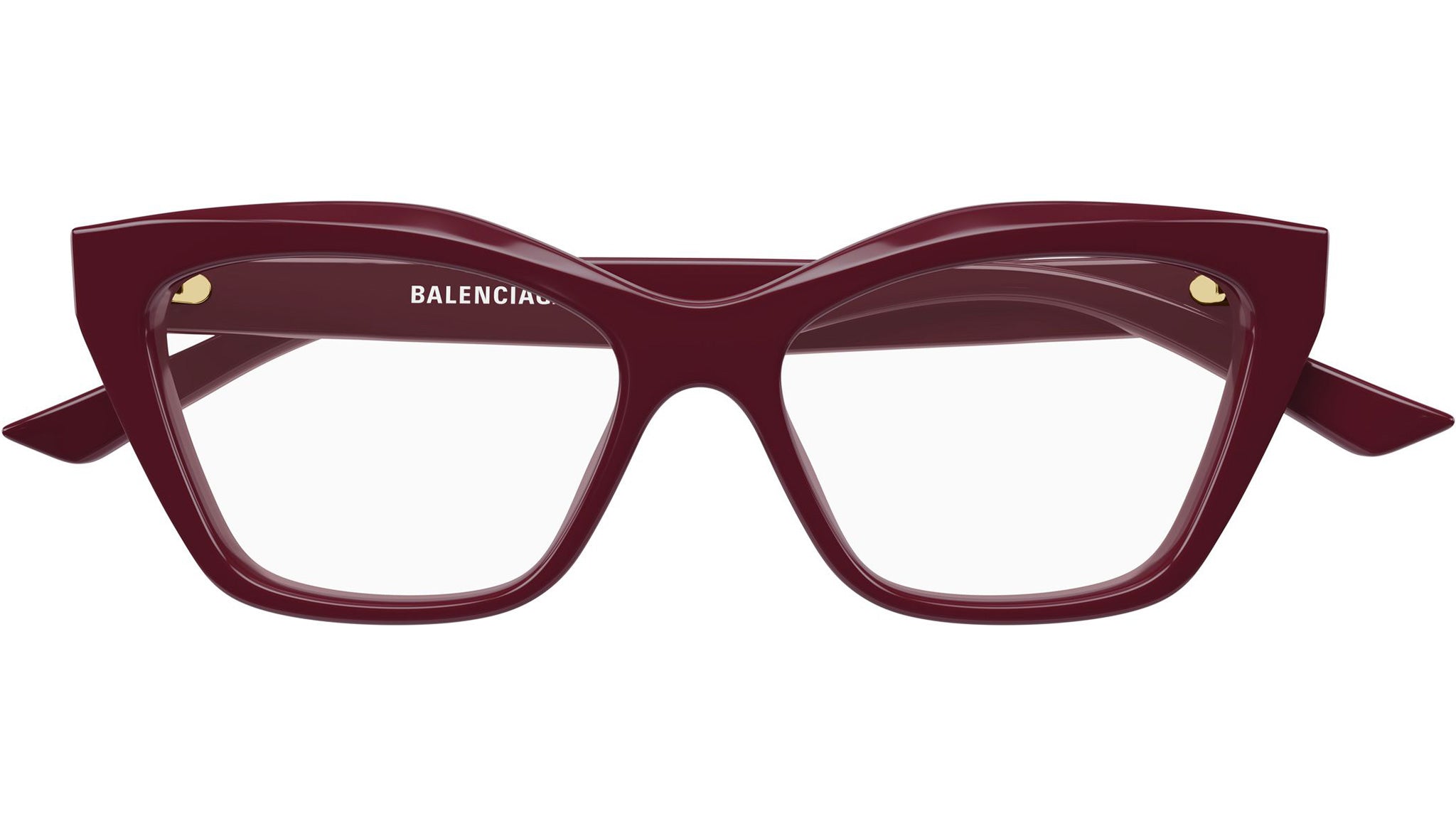 Occhiali da vista Balenciaga BB0342O 017 donna con montatura cat eye in acetato riciclato bordeaux solido lucido e lenti demo. Linea: Everyday. Codice modello: BB0342O. Codice colore: 017. Made in Italy. Rivenditore autorizzato Balenciaga online. Gli occhiali vengono consegnati con custodia e accessori originali e sono coperti dalla garanzia ufficiale di 12 mesi del produttore.