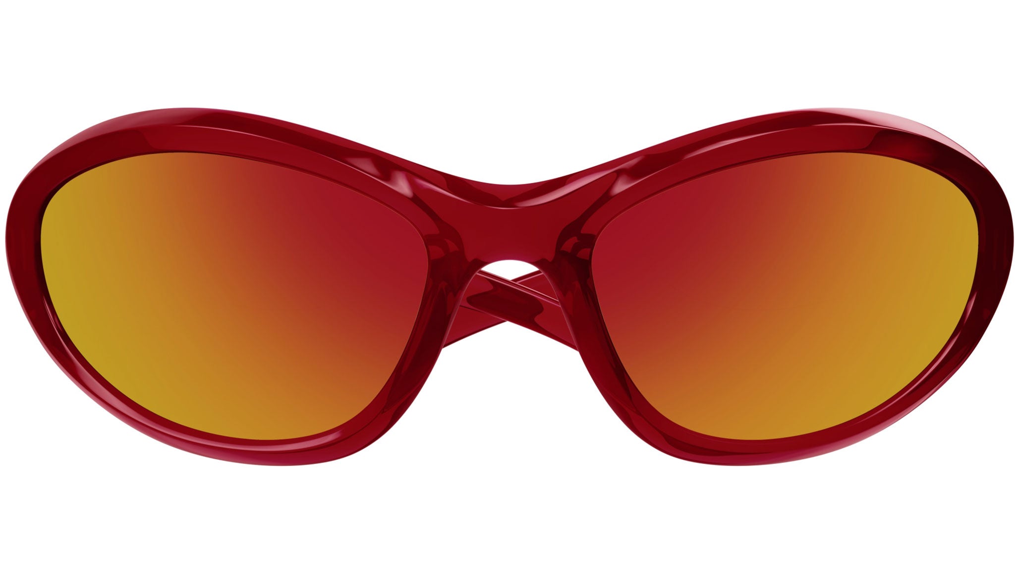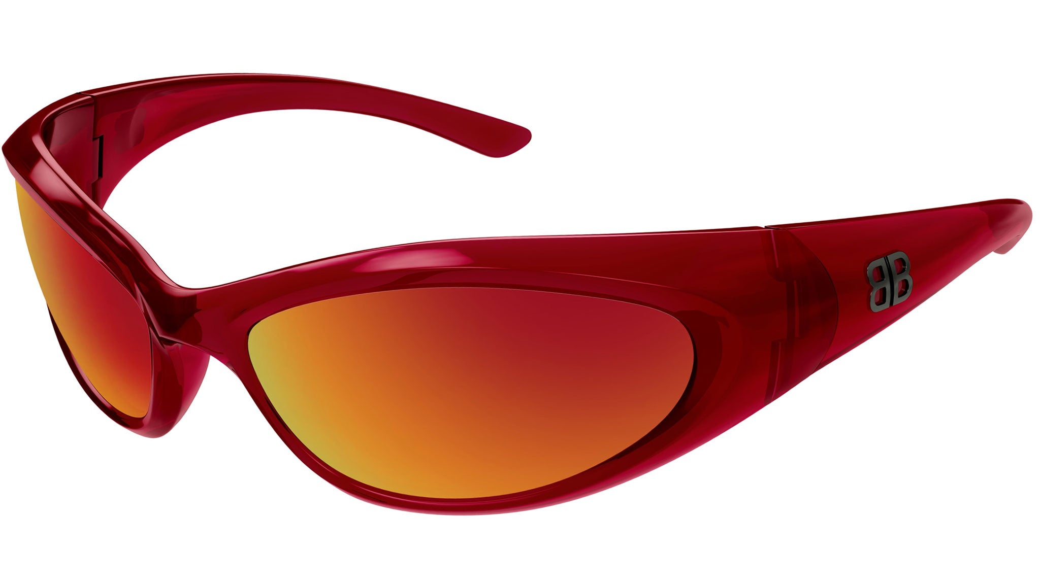 Occhiali da sole Balenciaga BB0384S 005 unisex con montatura cat eye in inietatto rosso trasparente lucido e lenti grigio solido a specchio rosso super 7. Linea: Extreme. Codice modello: BB0384S. Codice colore: 005. Made in Italy. Rivenditore autorizzato Balenciaga online. Gli occhiali vengono consegnati con custodia e accessori originali e sono coperti dalla garanzia ufficiale di 12 mesi del produttore.