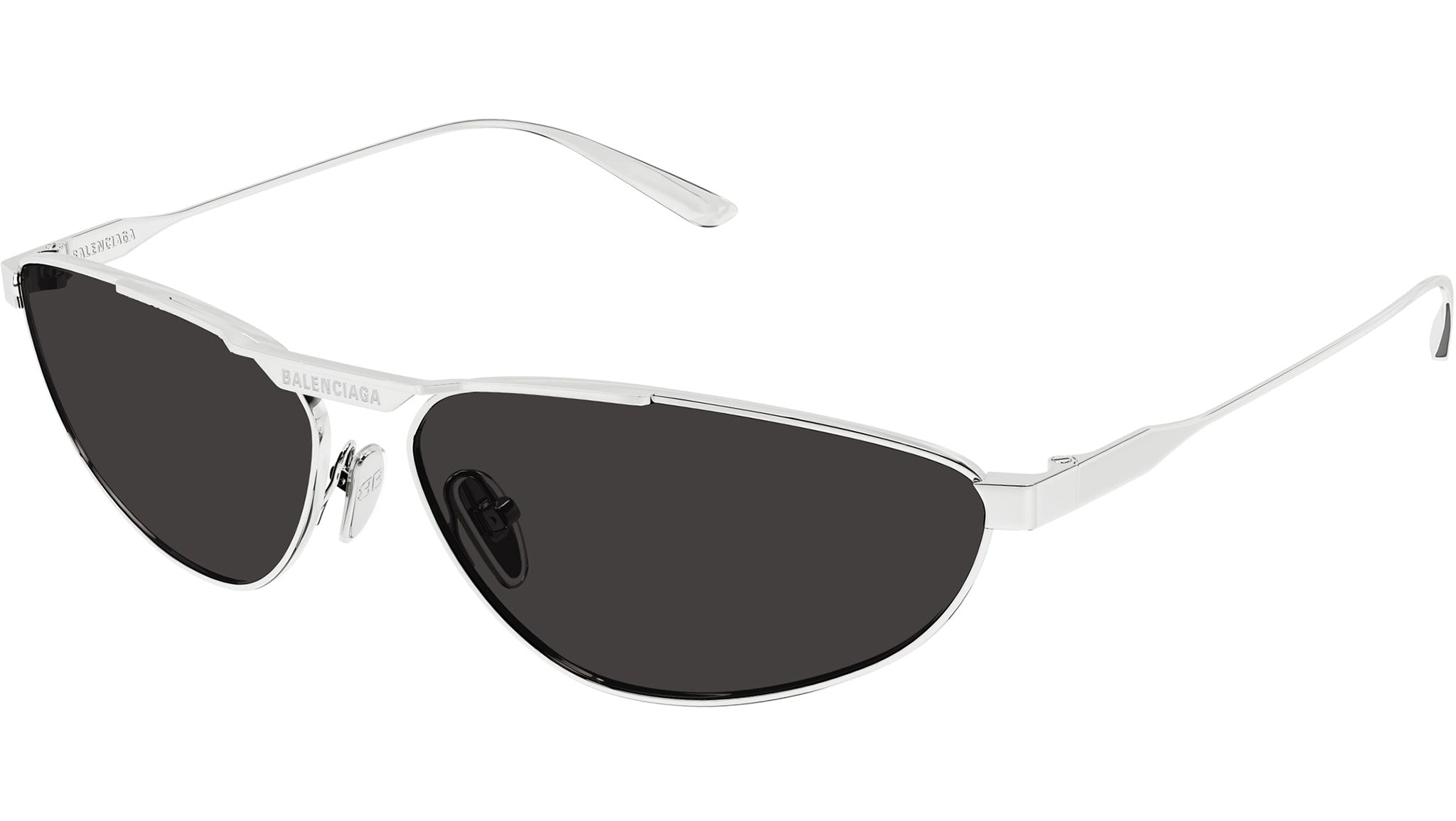 Occhiali da sole Balenciaga BB0417S 002 unisex con montatura aviatore in metallo argento lucido e lenti grigio tinta unita. Linea: Everyday. Codice modello: BB0417S. Codice colore: 002. Made in Japan. Rivenditore autorizzato Balenciaga online. Gli occhiali vengono consegnati con custodia e accessori originali e sono coperti dalla garanzia ufficiale di 12 mesi del produttore.