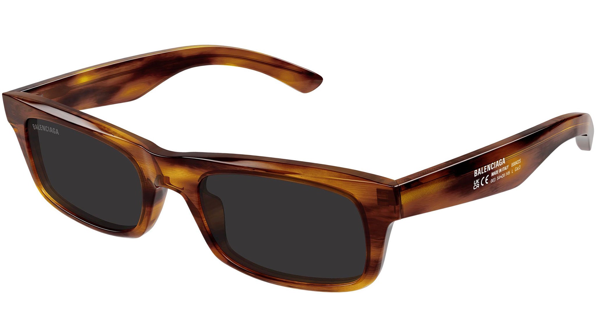 Occhiali da sole Balenciaga BB0422S 003 uomo con montatura rettangolare in acetato riciclato avana marrone corno lucido e lenti grigio solido. Linea: Everyday. Codice modello: BB0422S. Codice colore: 003. Made in Italy. Rivenditore autorizzato Balenciaga online. Gli occhiali vengono consegnati con custodia e accessori originali e sono coperti dalla garanzia ufficiale di 12 mesi del produttore.