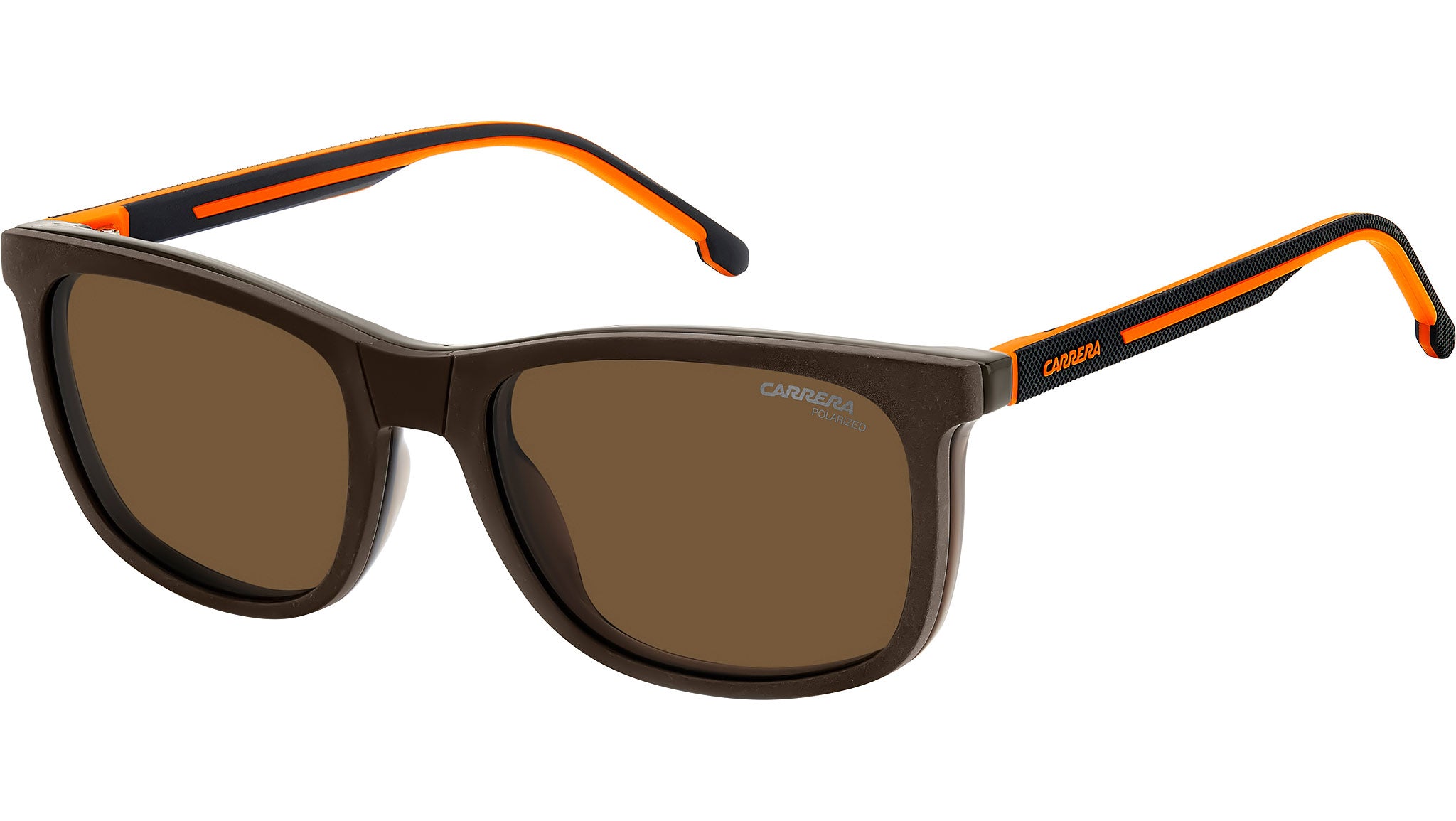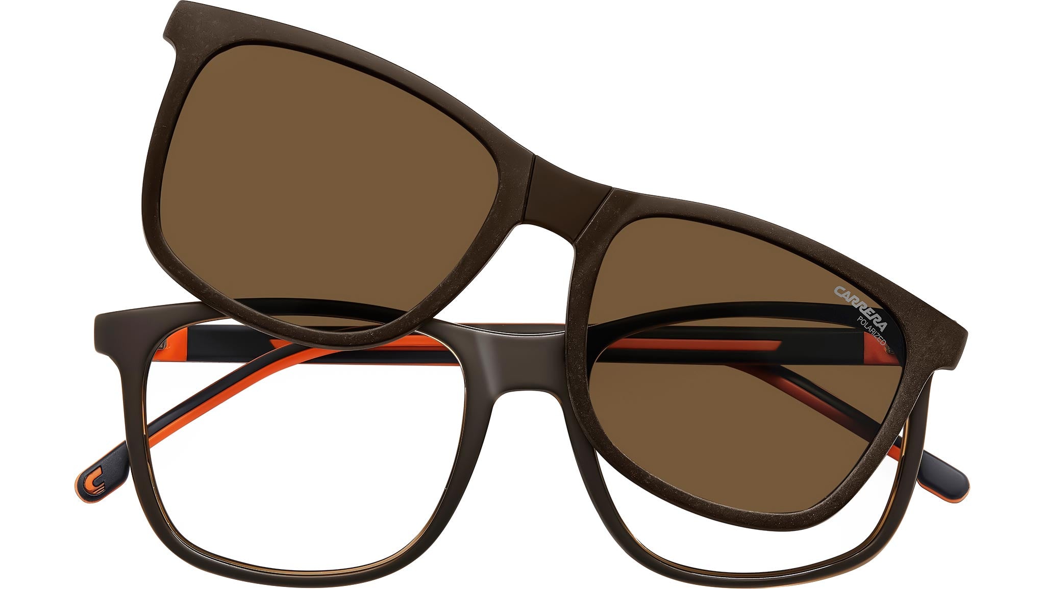 Occhiali da vista Carrera CA 8918/C 12J uomo con montatura rettangolare in poliammide ecologica marrone arancio e lenti demo. Un occhiale da vista Carrera che fonde performance e stile. Il frontale rettangolare è impeccabile - disponibile in versione bi-color. Si trasforma in un attimo, sovrapponendo le lenti da sole polarizzate clip-on in dotazione. Queste ultime sono pieghevoli, per averle sempre con sé quando le condizioni di luce lo richiedono. Le aste sono texturizzate, con inserti gommati a contrasto e logo in rilievo, in linea con il carattere dinamico del modello. Linea: Sport. Codice modello: 109495. Codice colore: 12J. Rivenditore autorizzato Carrera online. Gli occhiali vengono consegnati con custodia e accessori originali e sono coperti dalla garanzia ufficiale di 12 mesi del produttore.