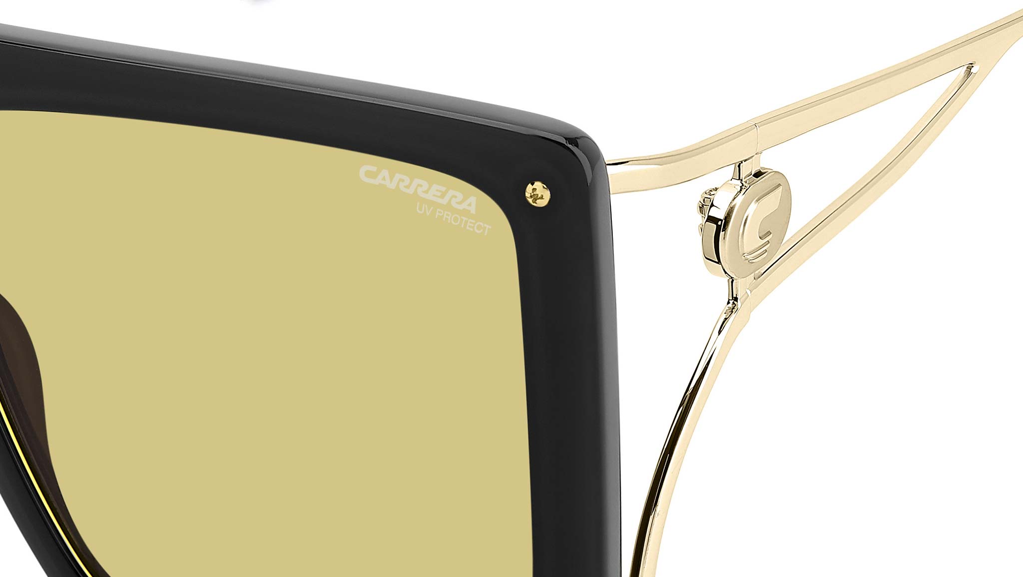 Occhiali da sole Carrera CA UNICA/SE 71C HW donna con montatura rettangolare in acetato nero giallo e lenti demo. Il puro DNA Carrera ispira un occhiale sole donna: un’edizione speciale dedicata alle personalità audaci. Iconico il frontale in acetato dalle dimensioni maxi, squadrato e ultra-piatto. È proposto in quattro diverse colorazioni, tutte decise ed appariscenti, con viti metalliche a decorare i quattro angoli. Le distintive aste a forchetta presentano la “C” incastonata come un autentico gioiello. Le lenti sono personalizzabili con la gradazione preferita. Linea: Flag. Codice modello: 207624. Codice colore: 71C HW. Rivenditore autorizzato Carrera online. Gli occhiali vengono consegnati con custodia e accessori originali e sono coperti dalla garanzia ufficiale di 12 mesi del produttore.