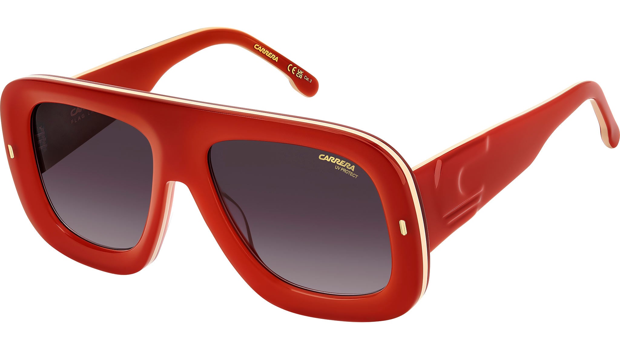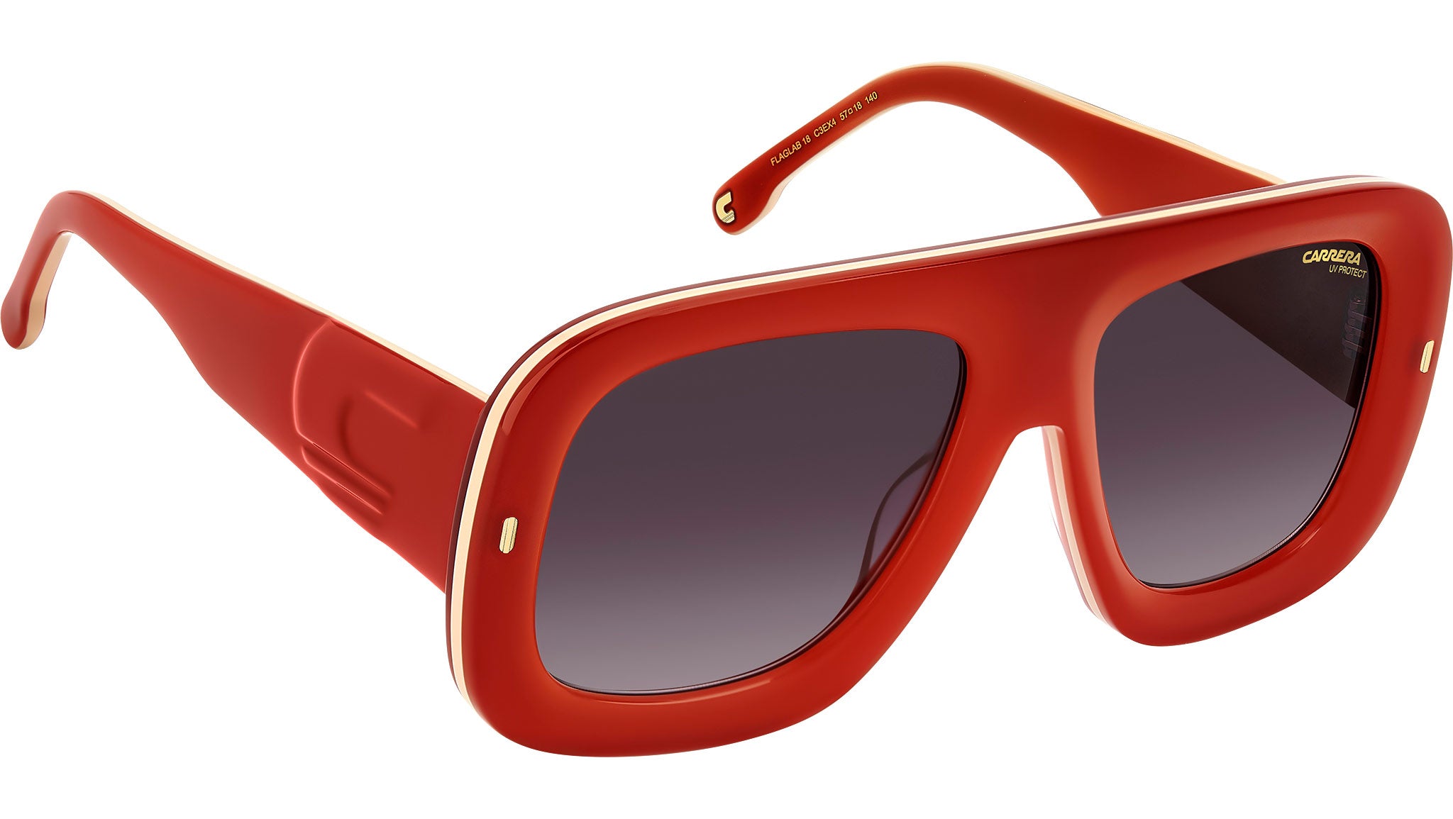 Occhiali da sole Carrera FLAGLAB 18 C3E X4 donna con montatura quadrata in acetato arancio oro e lenti demo. Un occhiale da sole da donna, in edizione speciale, che esprime il DNA Carrera. Il frontale è immediatamente riconoscibile, con volumi bold e lavorazione multistrato dall’effetto bi-color. Massima espressione di design, le aste con la “C” ottenuta da pressatura - lavorazione esclusiva di questa montatura. Il modello arriva con pack dedicato, e si può scegliere anche in versione specchiata. Linea: Flag. Codice modello: 207890. Codice colore: C3E X4. Rivenditore autorizzato Carrera online. Gli occhiali vengono consegnati con custodia e accessori originali e sono coperti dalla garanzia ufficiale di 12 mesi del produttore.