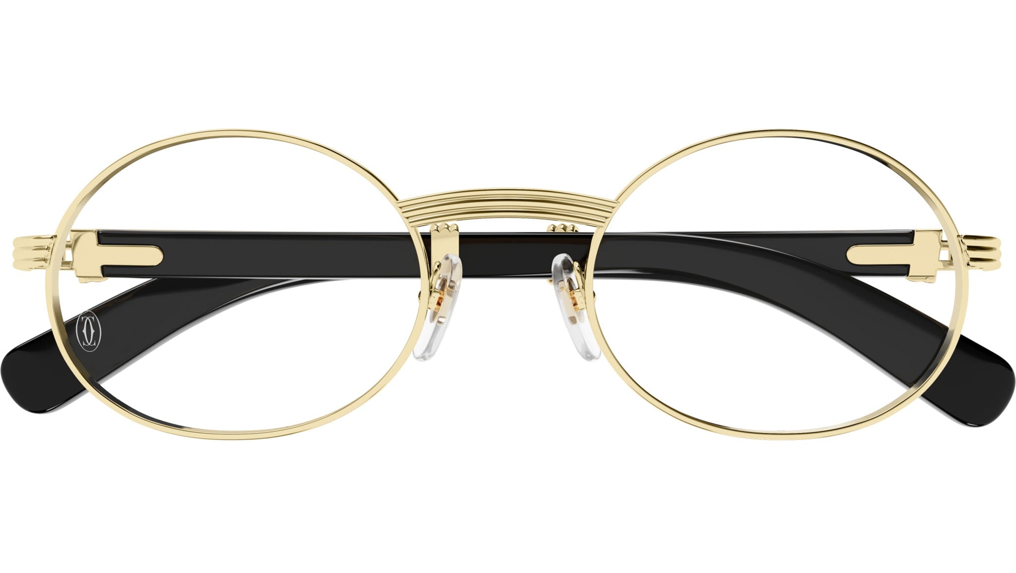 Occhiali da vista Cartier CT0464O 001 uomo con montatura ovale in metallo oro e lenti demo. Linea: Exception. Codice modello: CT0464O. Codice colore: 001. Made in France. Rivenditore autorizzato Cartier online. Gli occhiali vengono consegnati con custodia e accessori originali e sono coperti dalla garanzia ufficiale di 12 mesi del produttore.
