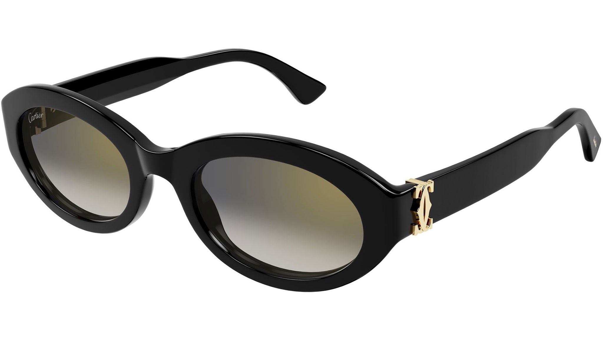 Occhiali da sole Cartier CT0588S 001 donna con montatura ovale in acetato riciclato color nero e lenti grigio sfumato con flash dorato. Linea: Contemporary. Codice modello: CT0588S. Codice colore: 001. Made in Italy. Rivenditore autorizzato Cartier online. Gli occhiali vengono consegnati con custodia e accessori originali e sono coperti dalla garanzia ufficiale di 12 mesi del produttore.