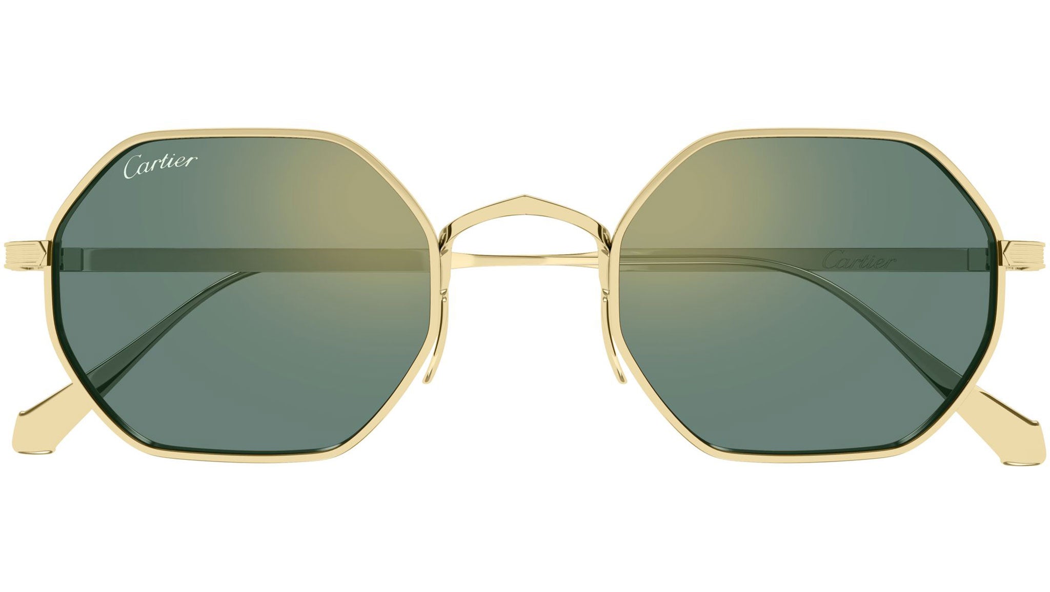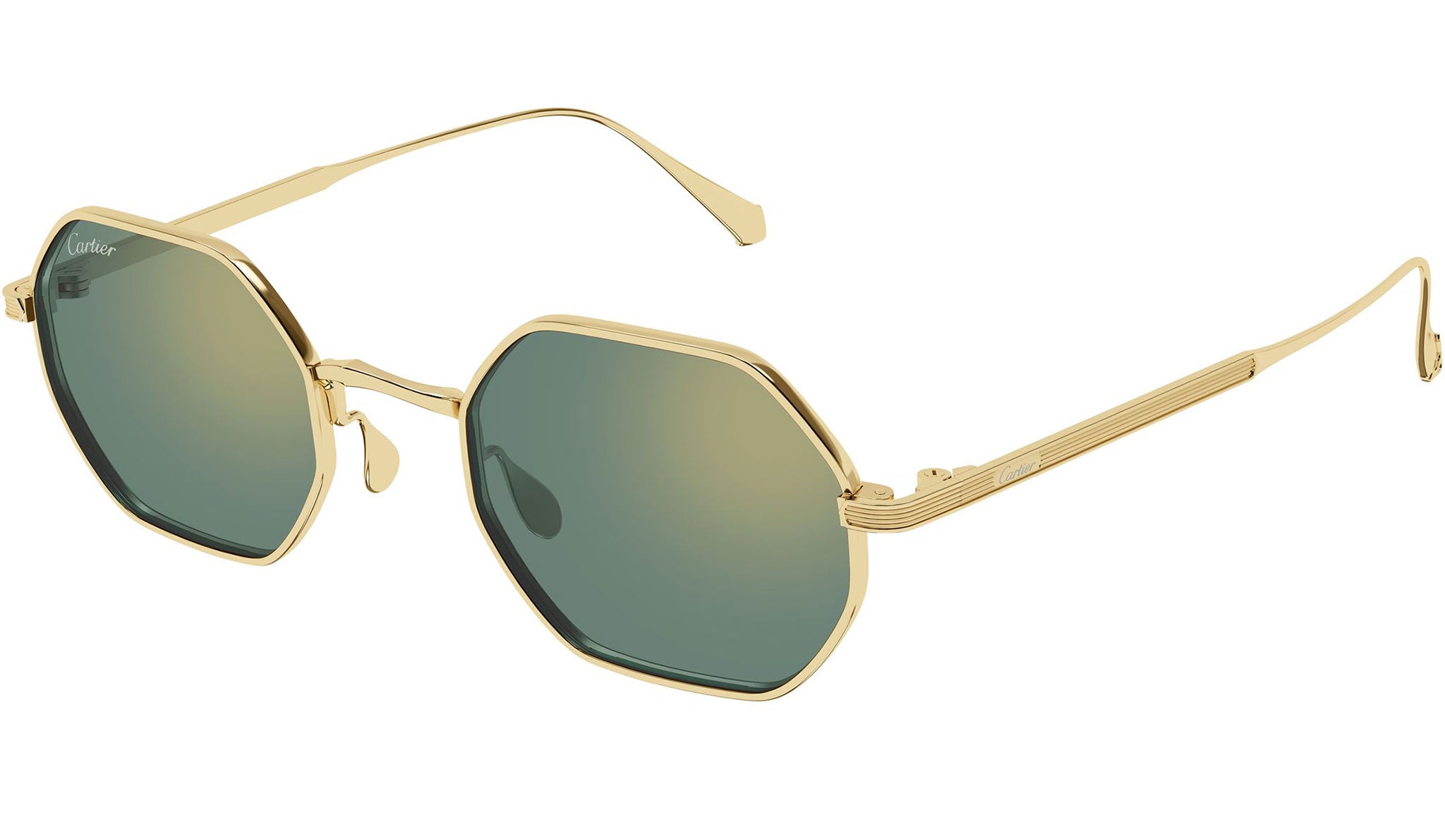 Occhiali da sole Cartier CT0627S 003 unisex con montatura geometrica in titanio color oro finitura smooth e lenti verde / flash oro. Linea: Core Range. Codice modello: CT0627S. Codice colore: 003. Made in Japan. Rivenditore autorizzato Cartier online. Gli occhiali vengono consegnati con custodia e accessori originali e sono coperti dalla garanzia ufficiale di 12 mesi del produttore.