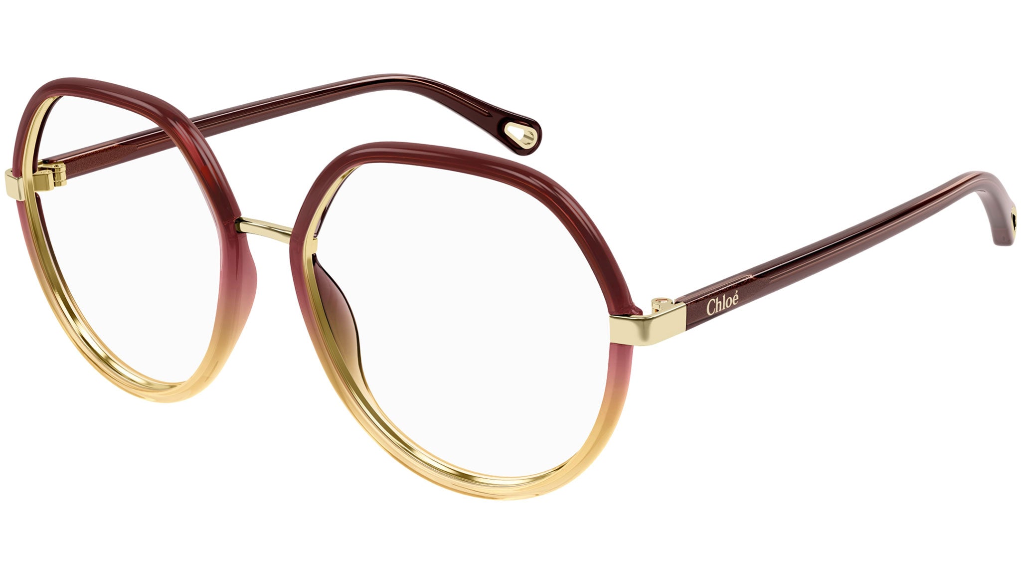 Occhiali da vista Chloé CH0131O 006 donna con montatura aviatore in inietatto tripla sfulatura trasparente bordeaux / bordeaux / crema e lenti demo. Linea: Chloé. Codice modello: CH0131O. Codice colore: 006. Made in Italy. Rivenditore autorizzato Chloé online. Gli occhiali vengono consegnati con custodia e accessori originali e sono coperti dalla garanzia ufficiale di 12 mesi del produttore.