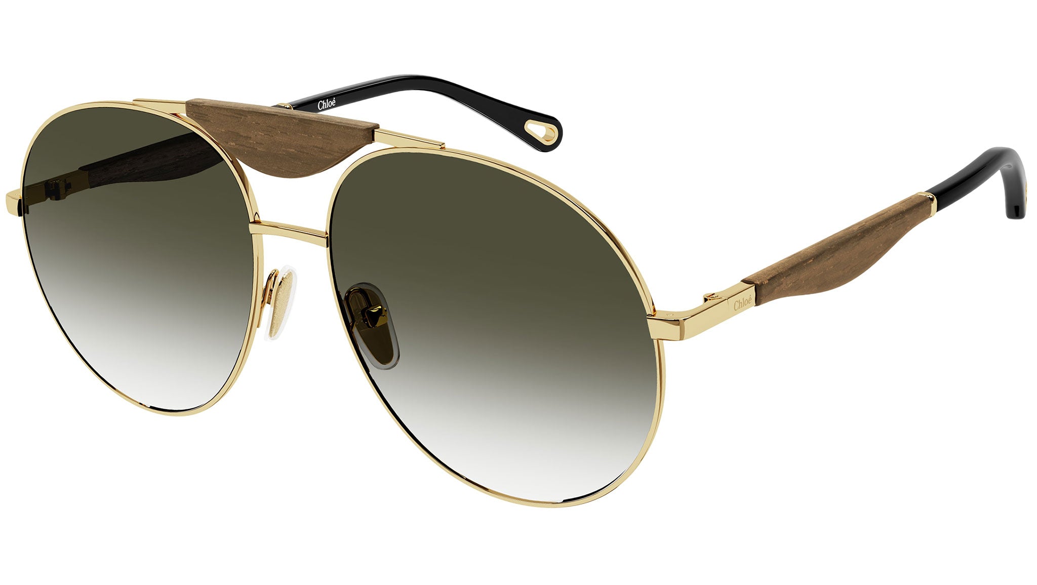 Occhiali da sole Chloé CH0148S 001 donna con montatura aviatore in metallo oro lucido classico e lenti verde sfumato. Linea: Chloé. Codice modello: CH0148S. Codice colore: 001. Made in Italy. Rivenditore autorizzato Chloé online. Gli occhiali vengono consegnati con custodia e accessori originali e sono coperti dalla garanzia ufficiale di 12 mesi del produttore.