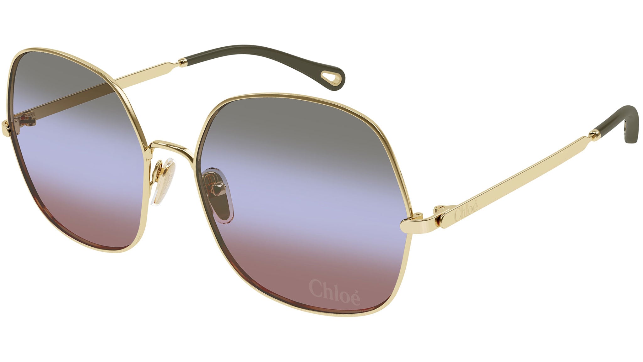 Occhiali da sole Chloé CH0282S 004 donna con montatura rettangolare in metallo oro lucido classico e lenti tripla sfumatura verde / indaco / ruggine. Linea: Chloé. Codice modello: CH0282S. Codice colore: 004. Made in Italy. Rivenditore autorizzato Chloé online. Gli occhiali vengono consegnati con custodia e accessori originali e sono coperti dalla garanzia ufficiale di 12 mesi del produttore.