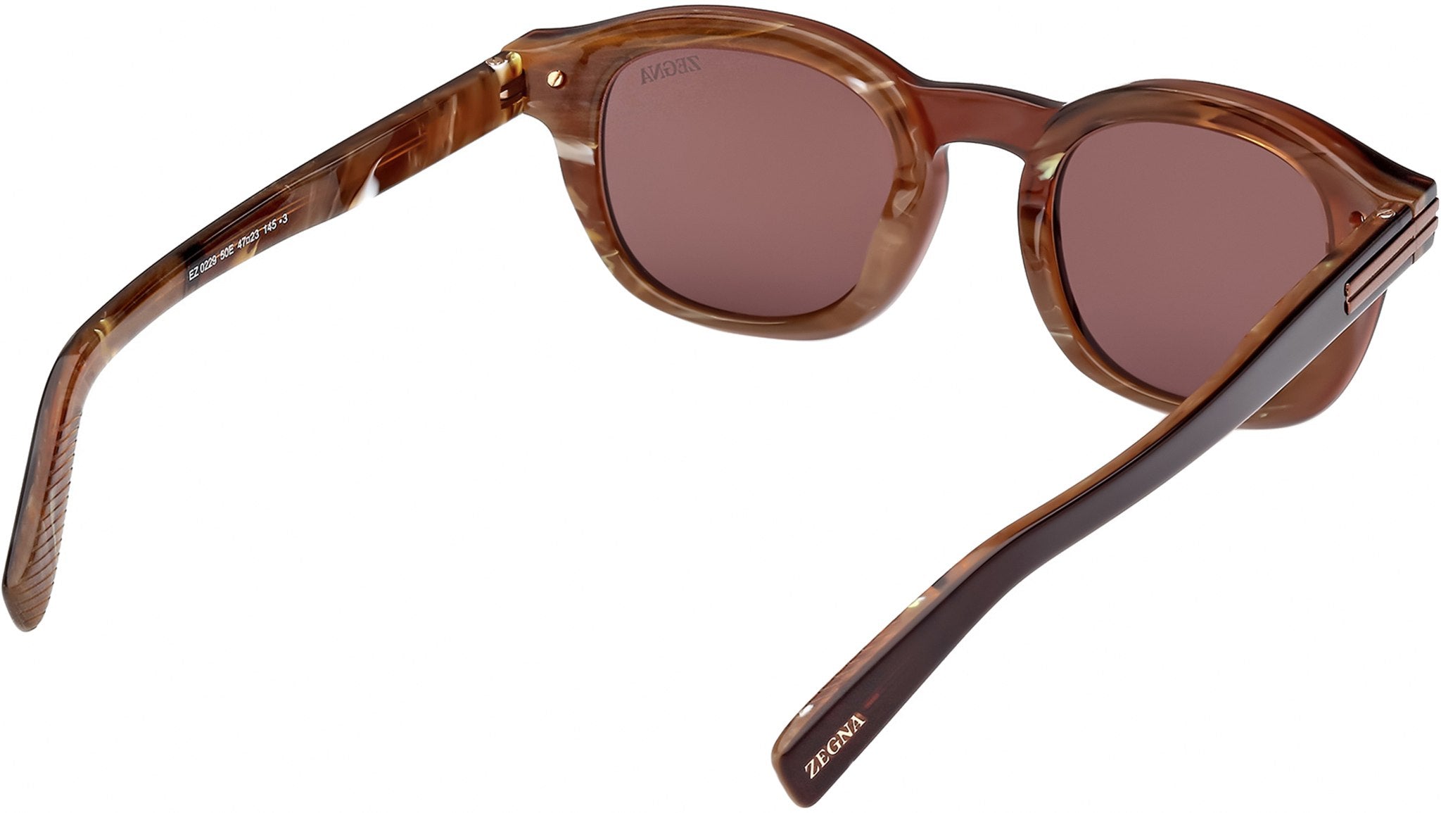 Occhiali da sole Zegna unisex modello EZ0229 con montatura marrone chiaro monocolore full-rim in acetato e lenti color marrone. Codice Brand: EZ0229. Codice colore: 50E. Rivenditore autorizzato Ermenegildo Zegna online. Gli occhiali vengono consegnati con custodia e accessori originali e sono coperti da garanzia standard di 12 mesi del produttore.