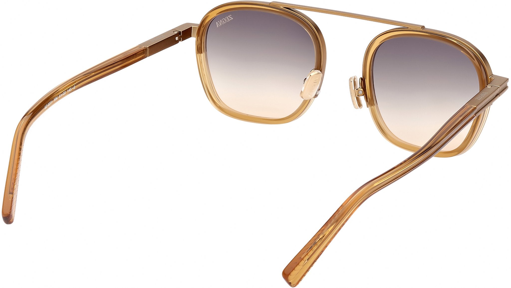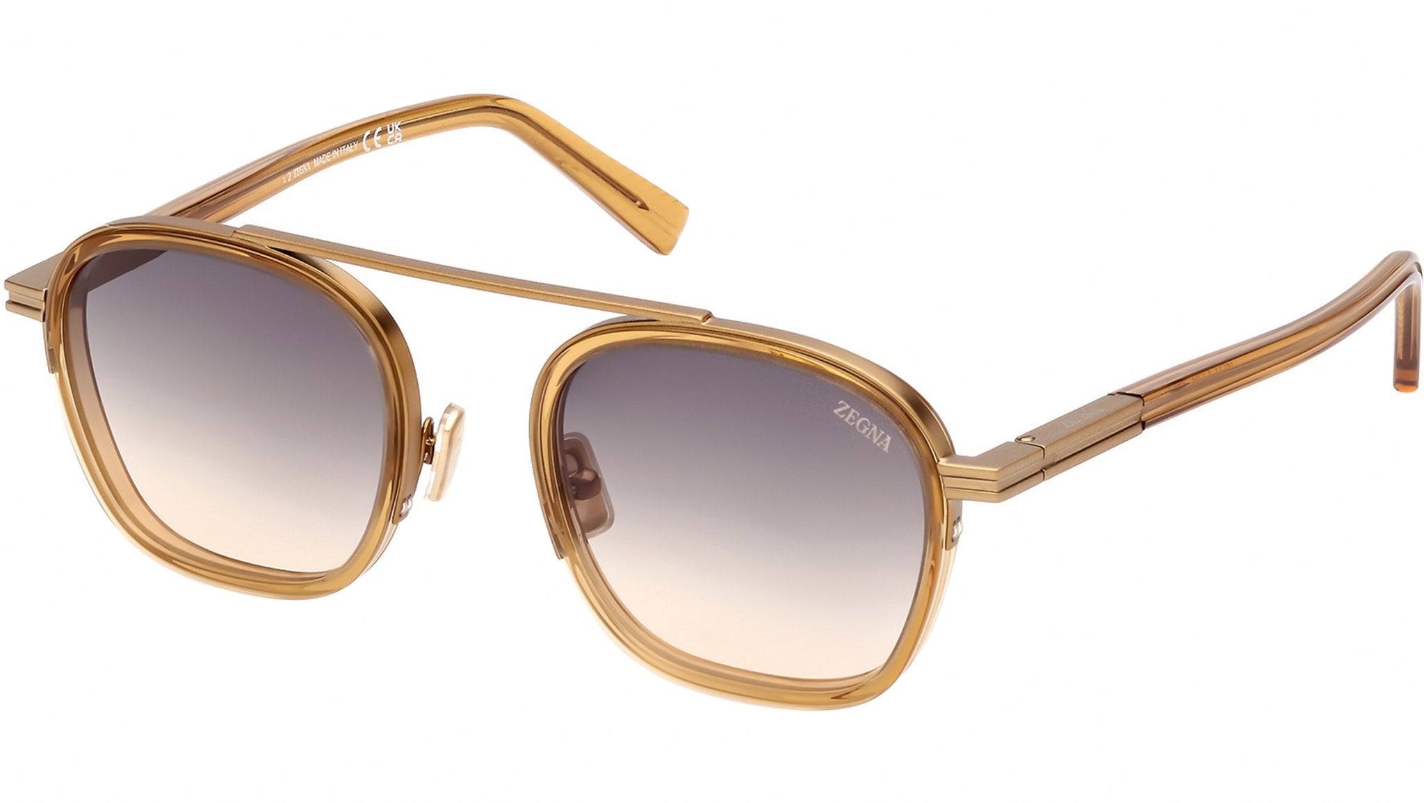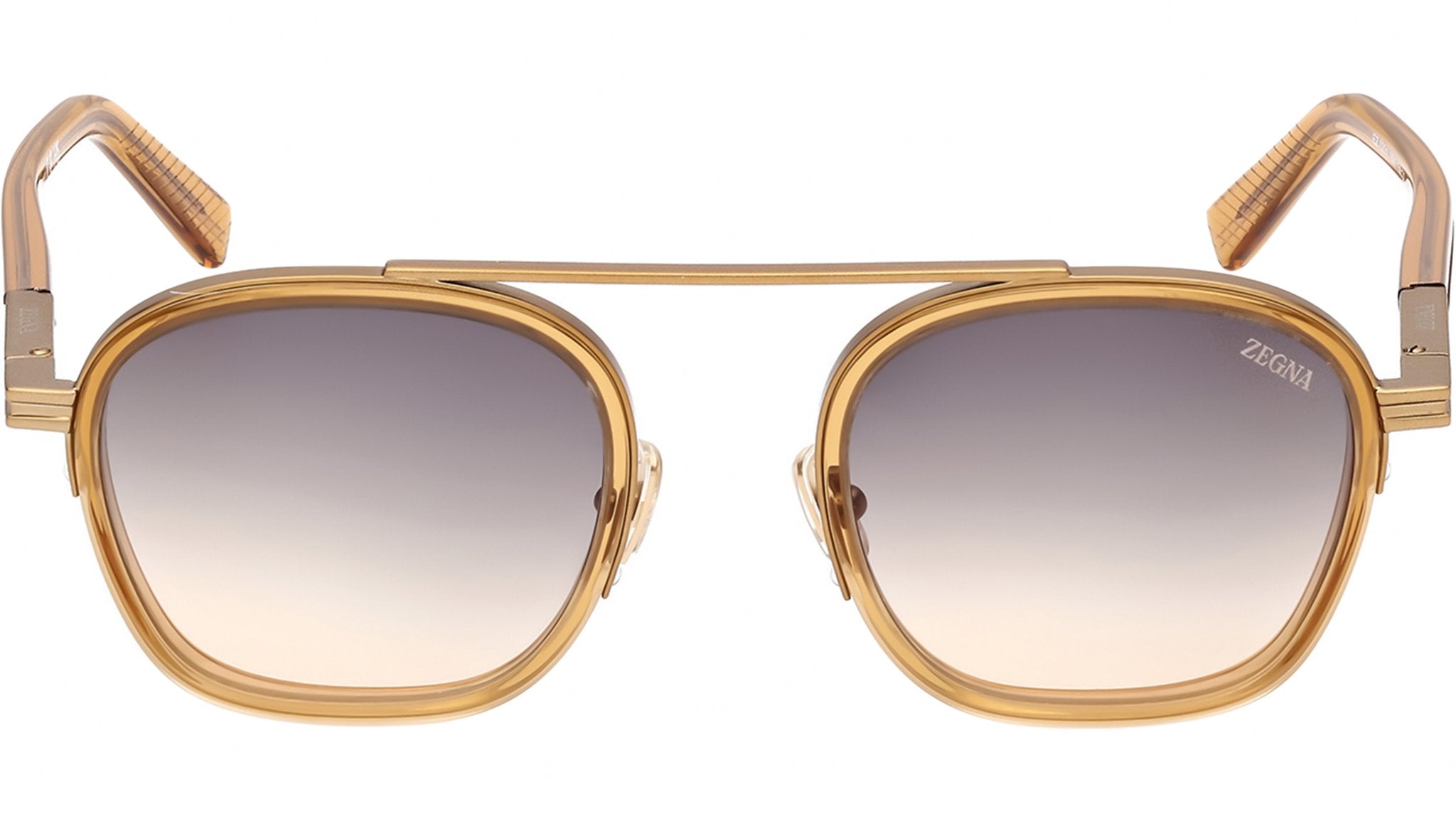 Occhiali da sole Zegna uomo modello EZ0231 con montatura giallo scuro lucido full-rim in metallo e lenti color roviex sfumato. Codice Brand: EZ0231. Codice colore: 39K. Rivenditore autorizzato Ermenegildo Zegna online. Gli occhiali vengono consegnati con custodia e accessori originali e sono coperti da garanzia standard di 12 mesi del produttore.