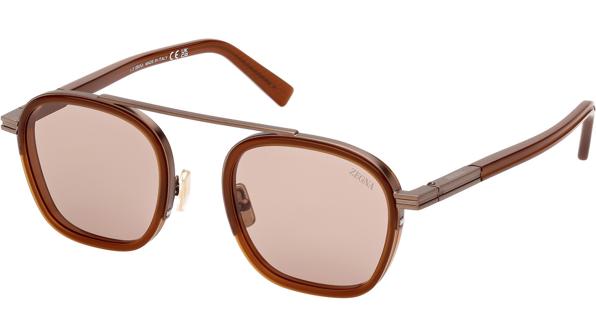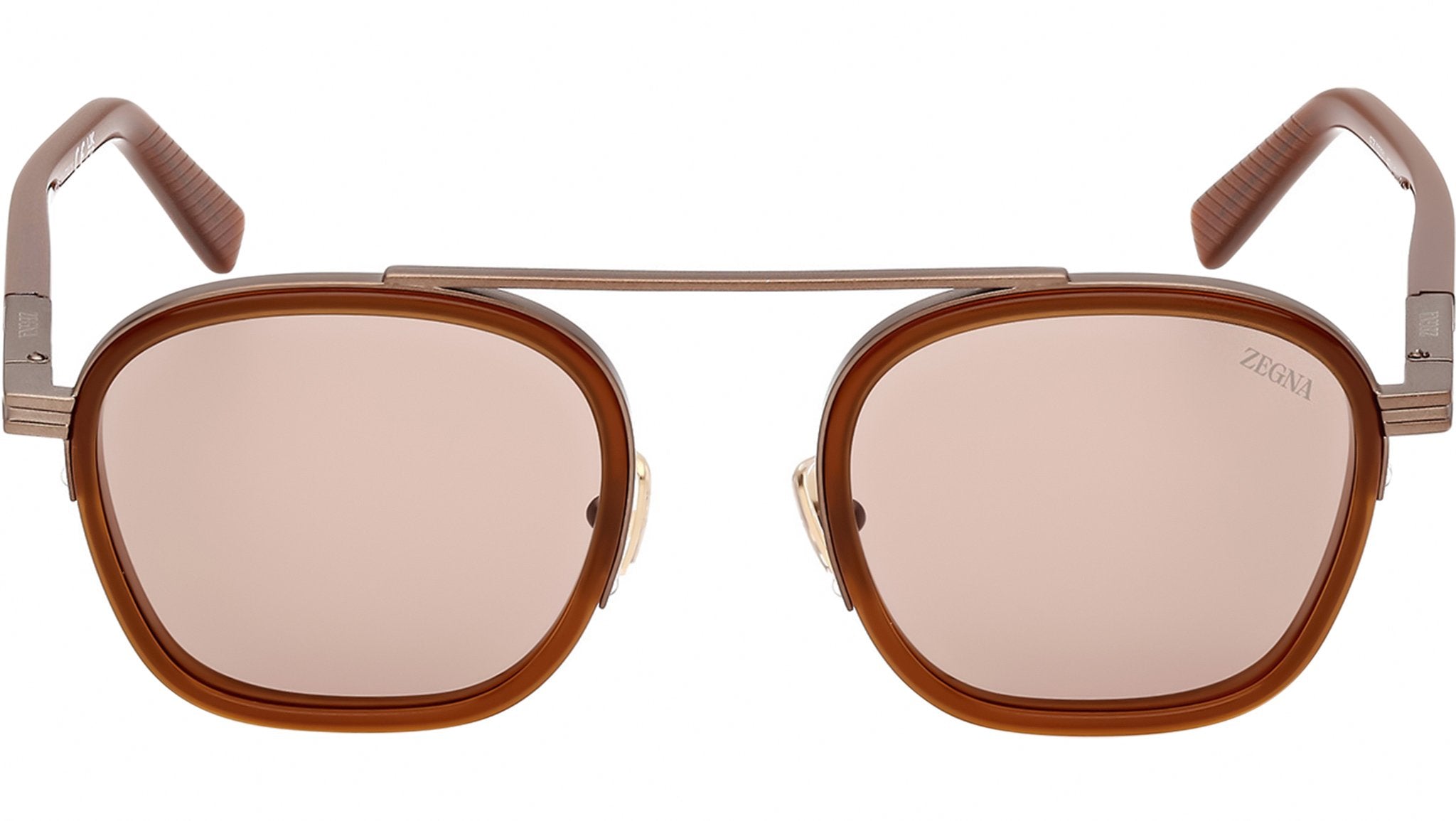 Occhiali da sole Zegna uomo modello EZ0231 con montatura marrone scuro lucido full-rim in metallo e lenti color marrone roviex. Codice Brand: EZ0231. Codice colore: 48J. Rivenditore autorizzato Ermenegildo Zegna online. Gli occhiali vengono consegnati con custodia e accessori originali e sono coperti da garanzia standard di 12 mesi del produttore.