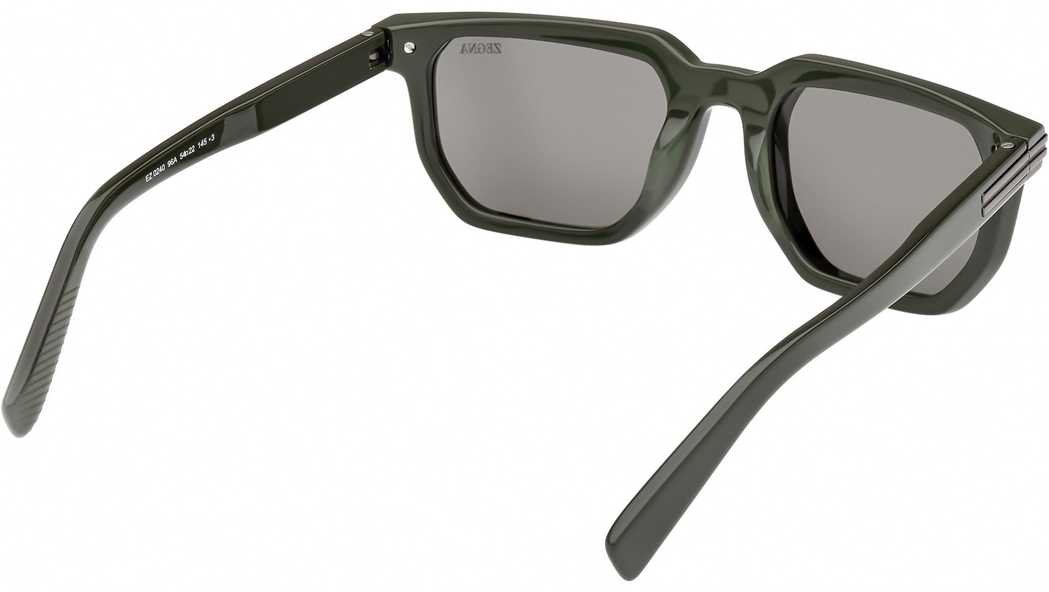 Occhiali da sole Zegna uomo modello EZ0240 con montatura verde scuro lucido full-rim in acetato e lenti color grigio fumo. Codice Brand: EZ0240. Codice colore: 96A. Rivenditore autorizzato Ermenegildo Zegna online. Gli occhiali vengono consegnati con custodia e accessori originali e sono coperti da garanzia standard di 12 mesi del produttore.